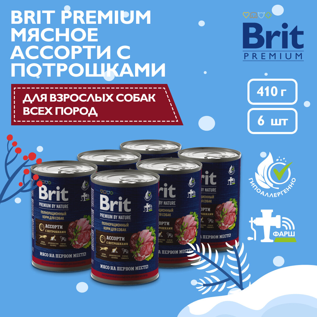 BRIT PREMIUM BY NATURE DOG для взрослых собак всех пород ассорти с потрошками банка 410 гр 410 гр х 6 шт