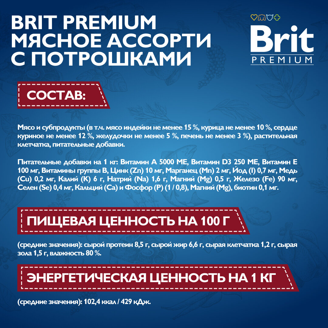 СохранитьКонсервированный корм BRIT PREMIUM BY NATURE DOG для взрослых собак всех пород ассорти с потрошками (410 гр х 9 шт) интересное: