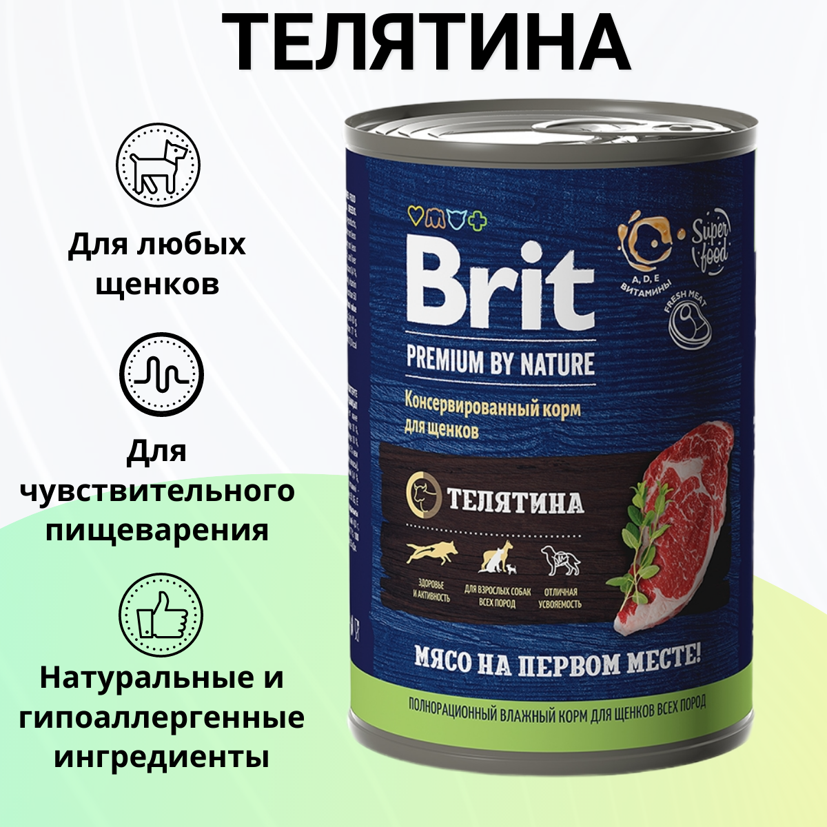 Brit Premium by Nature Корм консервированный с телятиной для щенков всех пород, 410гр, 6 штук