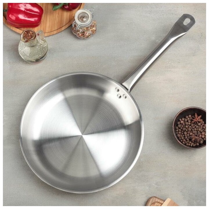 Купить Сковорода из нержавеющей стали d-28см h-5см (не полиров) тройное дно профессиональная индукция