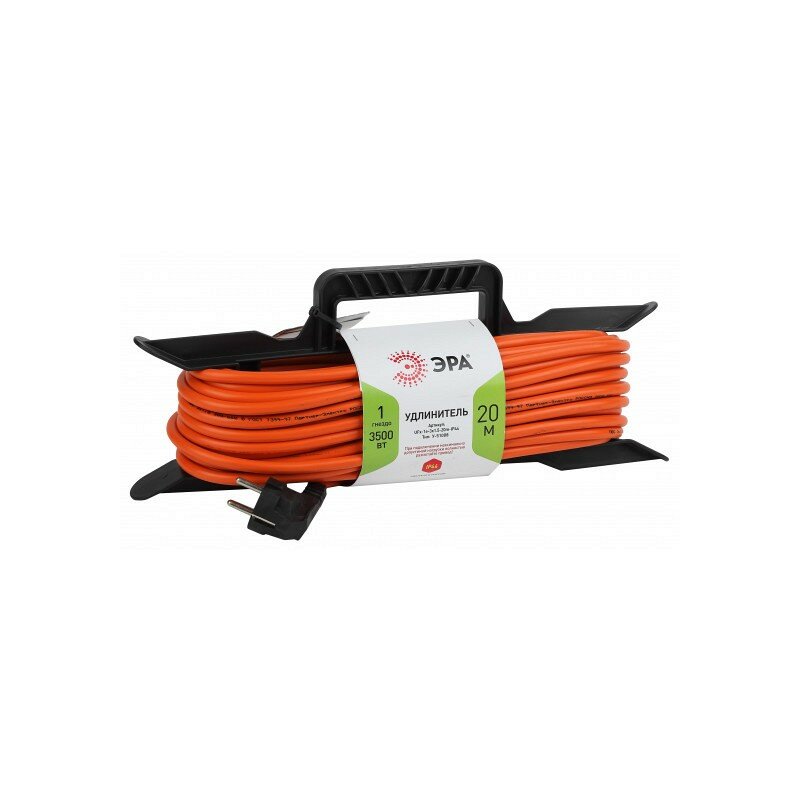 Удлинитель силовой Эра UFx-1e-3x0.75-20m-IP44, розеток 1шт, 3x0.75 кв.мм, 6A, 20м, ПВС, рамка пластиковая, оранжевый [б0046826]