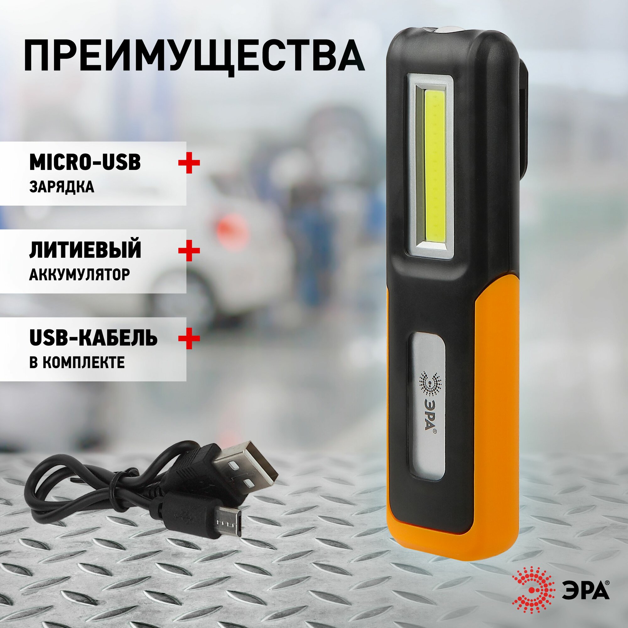 Эра Б0052313 Светодиодный фонарь Рабочие, серия "Практик" RA-803 аккумуляторный, крючок, магнит, miscro USB