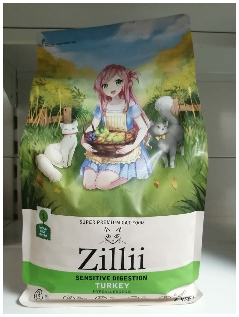 Корм для кошек сухой с чувствительным пищеварением 2 кг, гипоаллергенный ZILLII (Зилли), Индейка