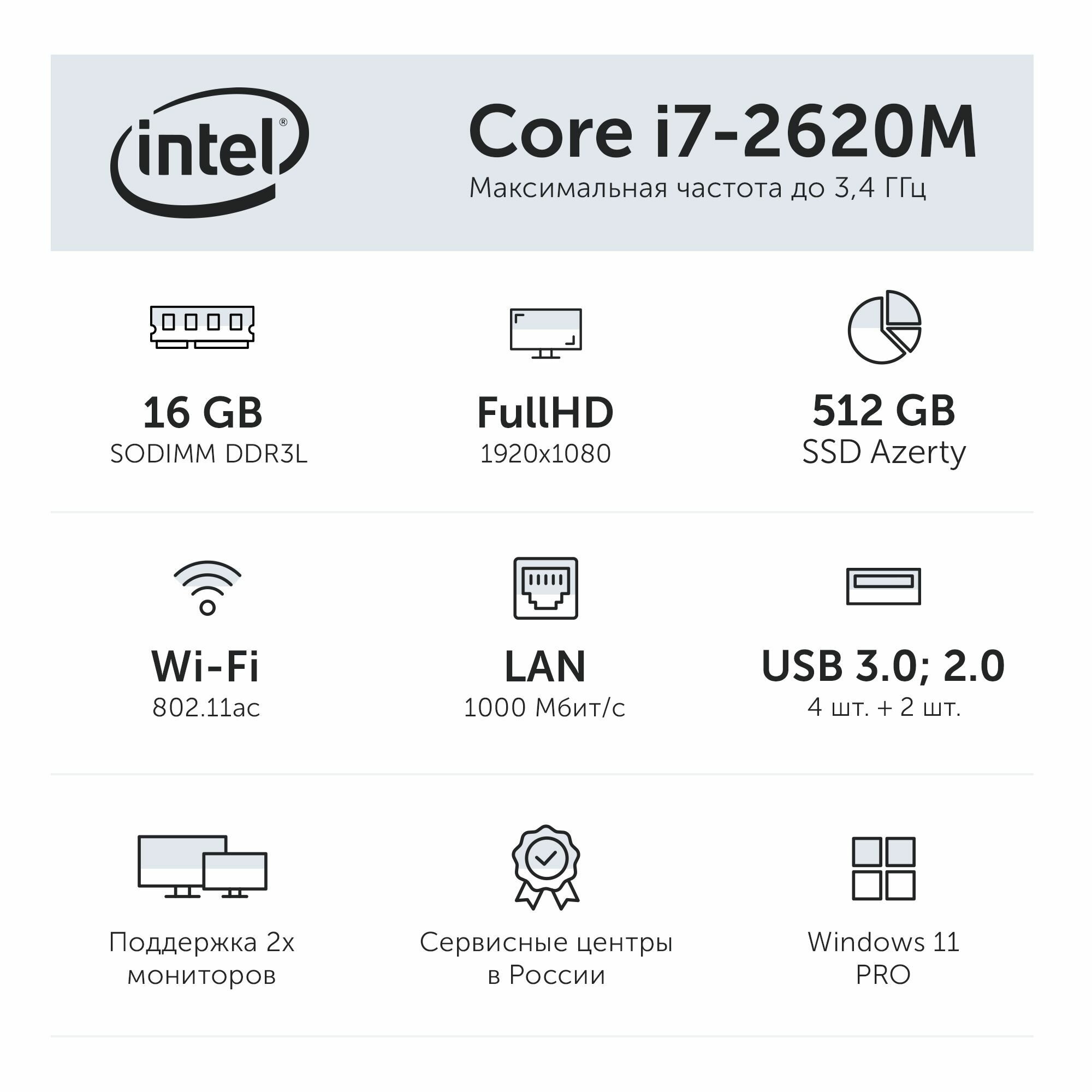 Моноблок Azerty AZ-2413 (23.8" IPS 1920х1080, Intel i7-2620M 2x2.7 ГГц, 16 Гб DDR3L, 512 Гб SSD)