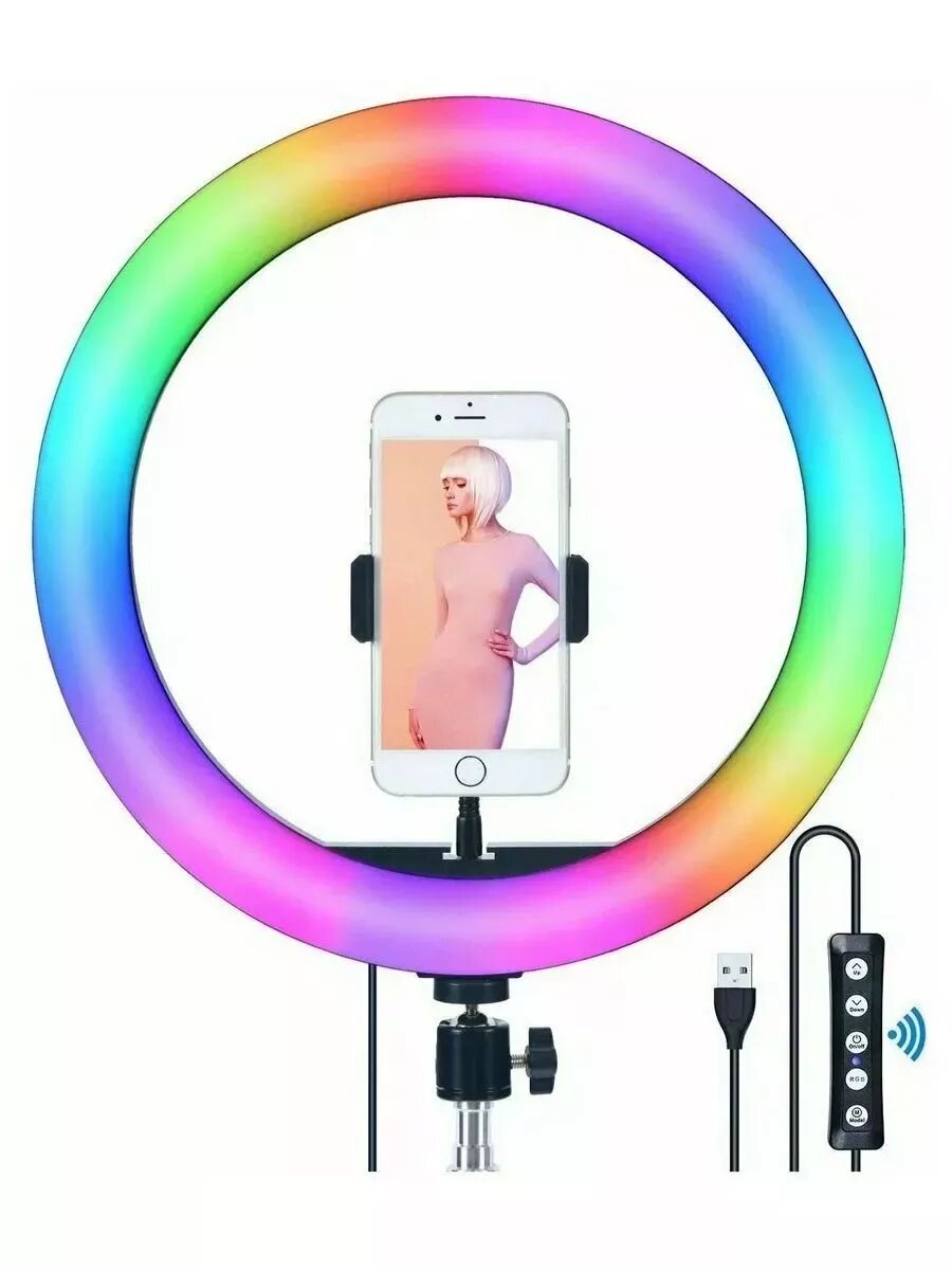 Купить Селфи лампа с кольцевым осветителем SL-R26 RGB круглая для смартфона IPhone - Android 26cm