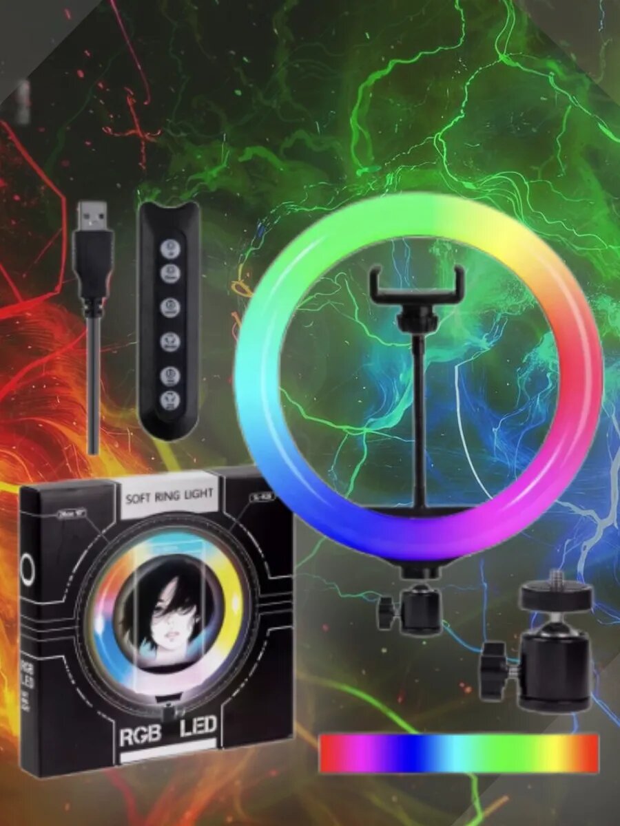 СохранитьСелфи лампа с кольцевым осветителем SL-R26 RGB круглая для смартфона IPhone - Android 26cm интересное: