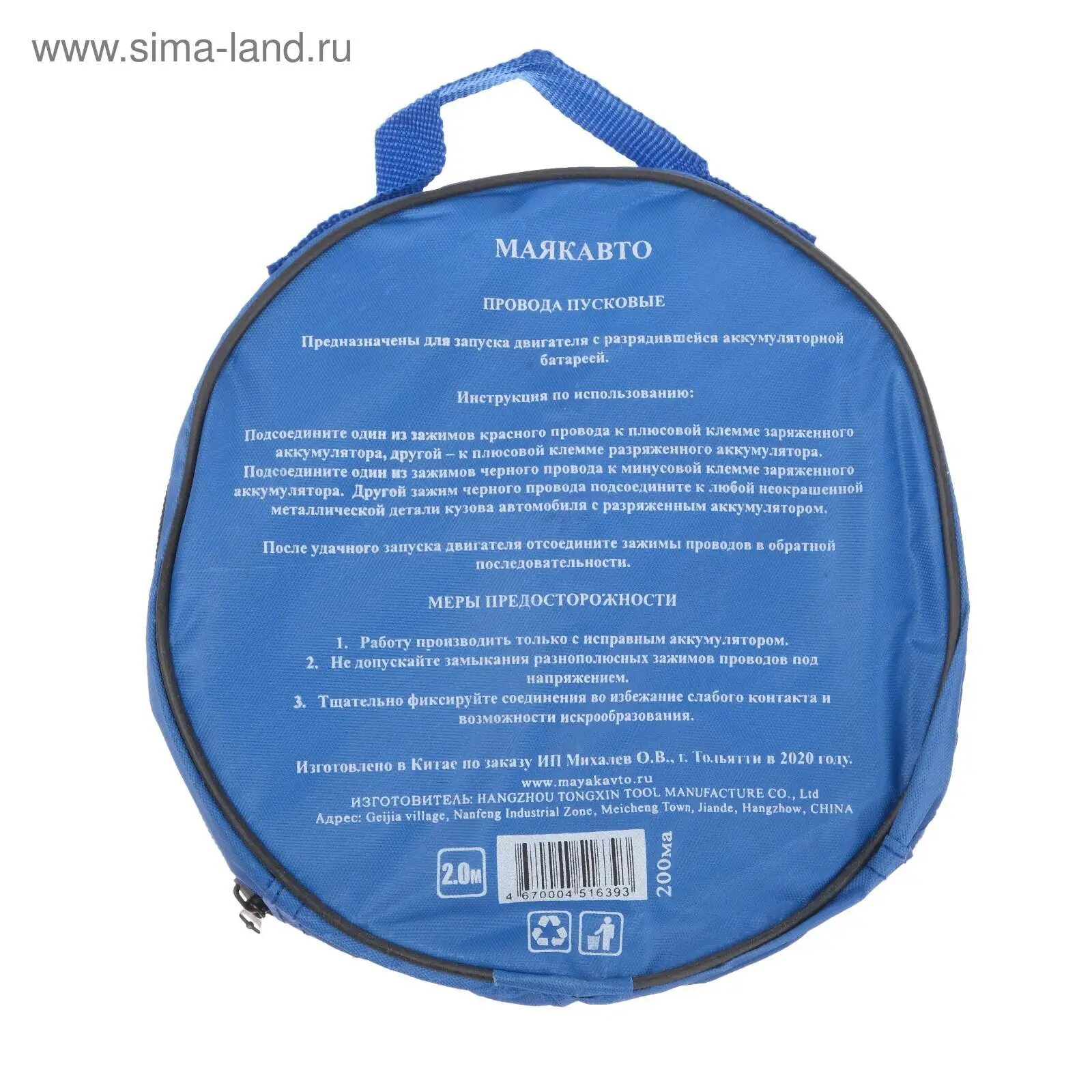 Маякавто. Провода прикуривания / Пусковые провода а 200 Ампер, длина- 2 метра. Маякавто