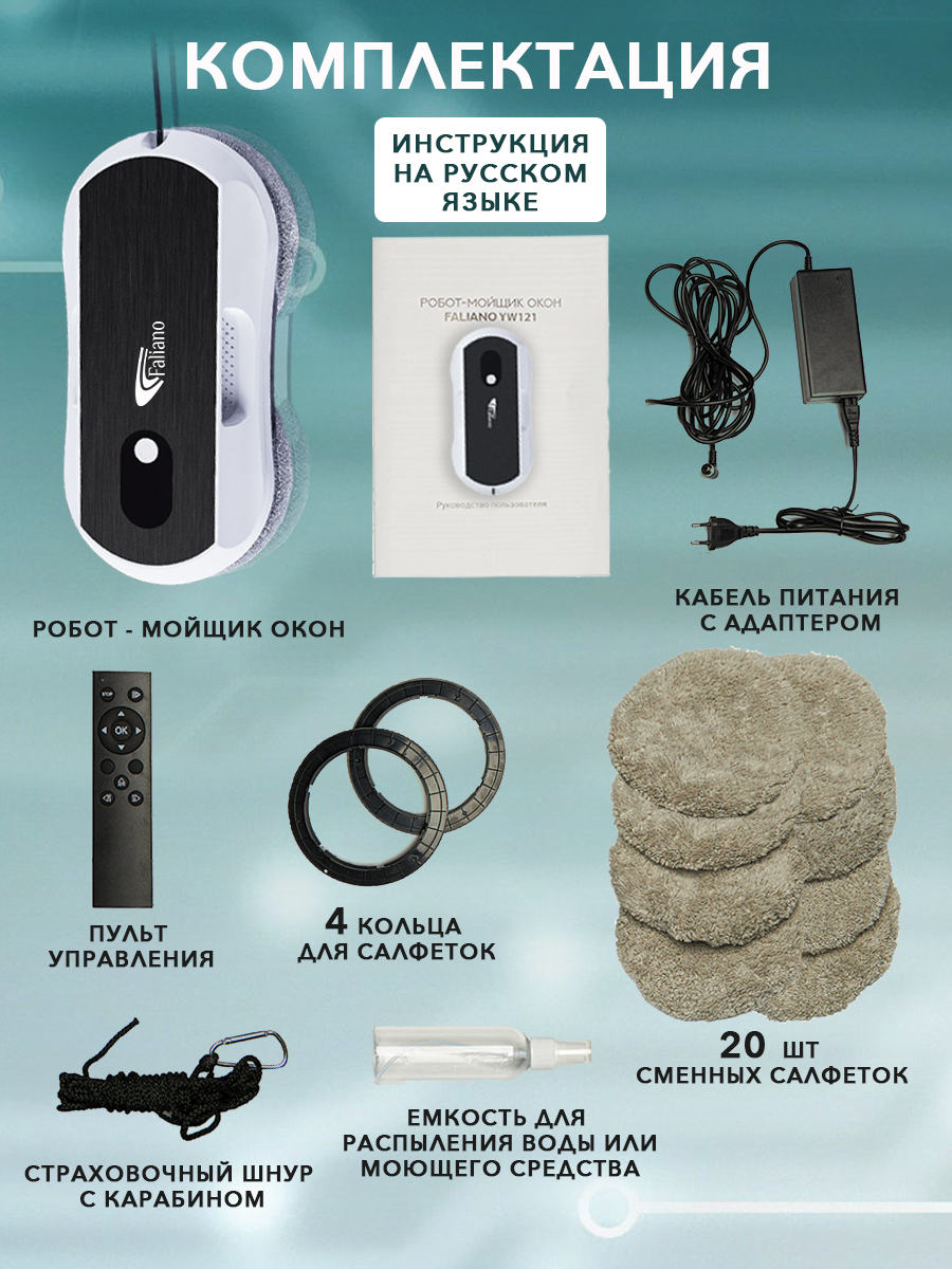 Робот мойщик окон Faliano с двумя распылителями, 20 салфеток в комплекте интересное: