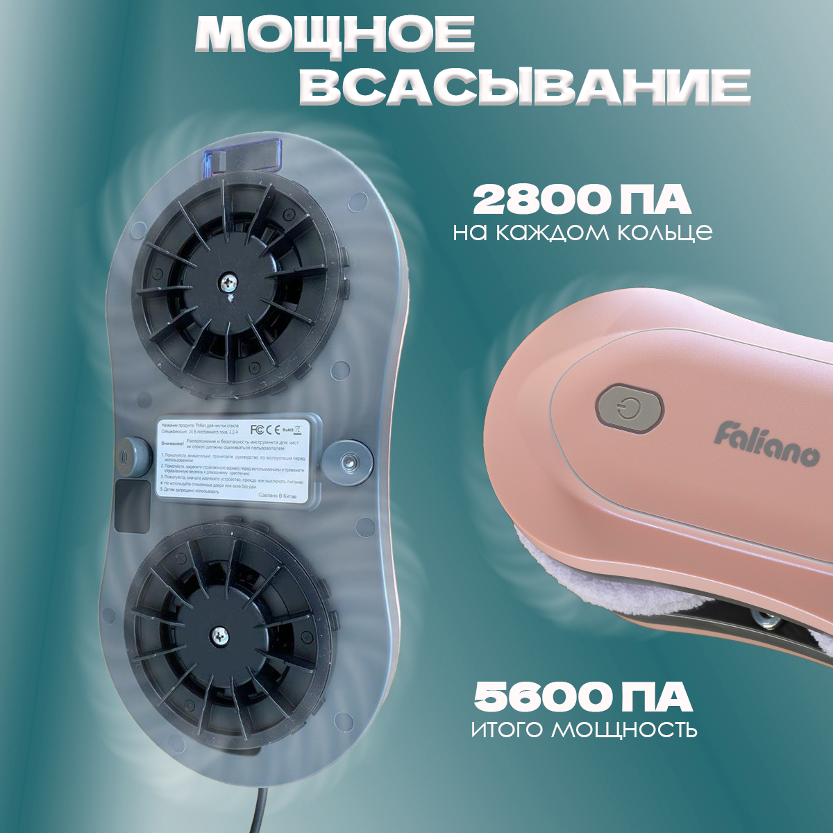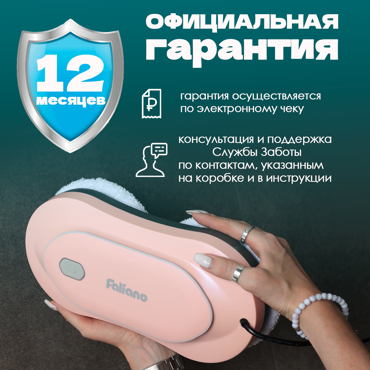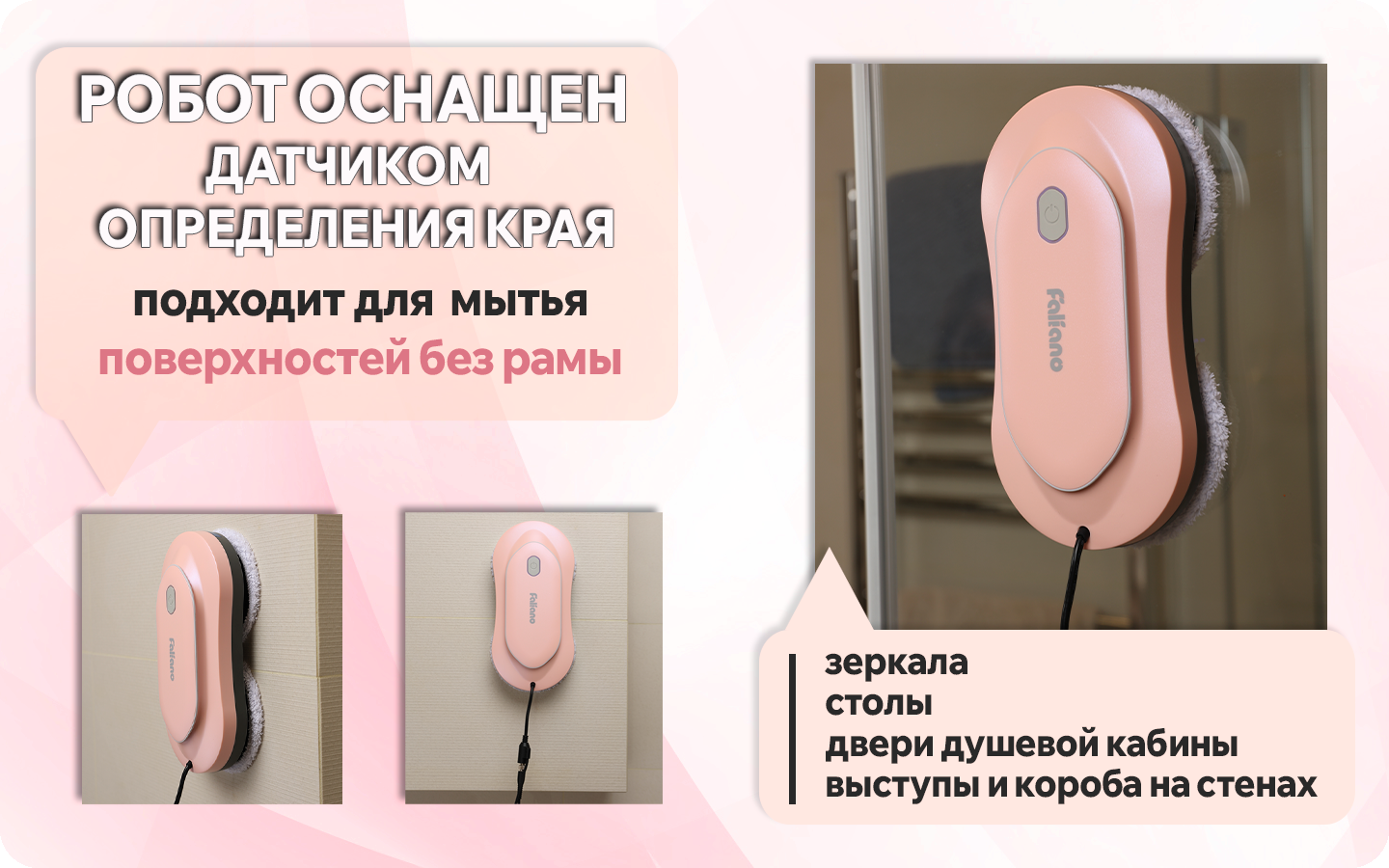 Робот мойщик окон Faliano с распылением воды с двух сторон, датчиком обнаружения края, 20 салфеток в комплекте интересное: