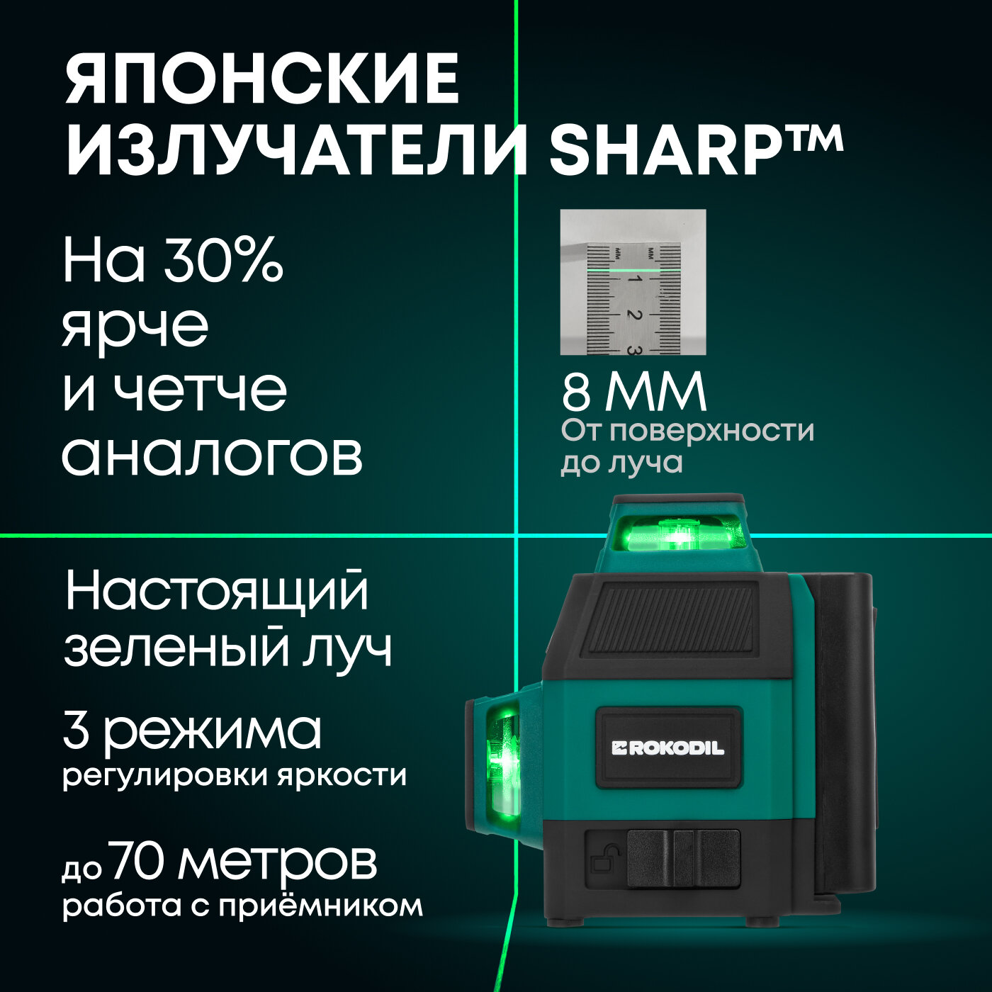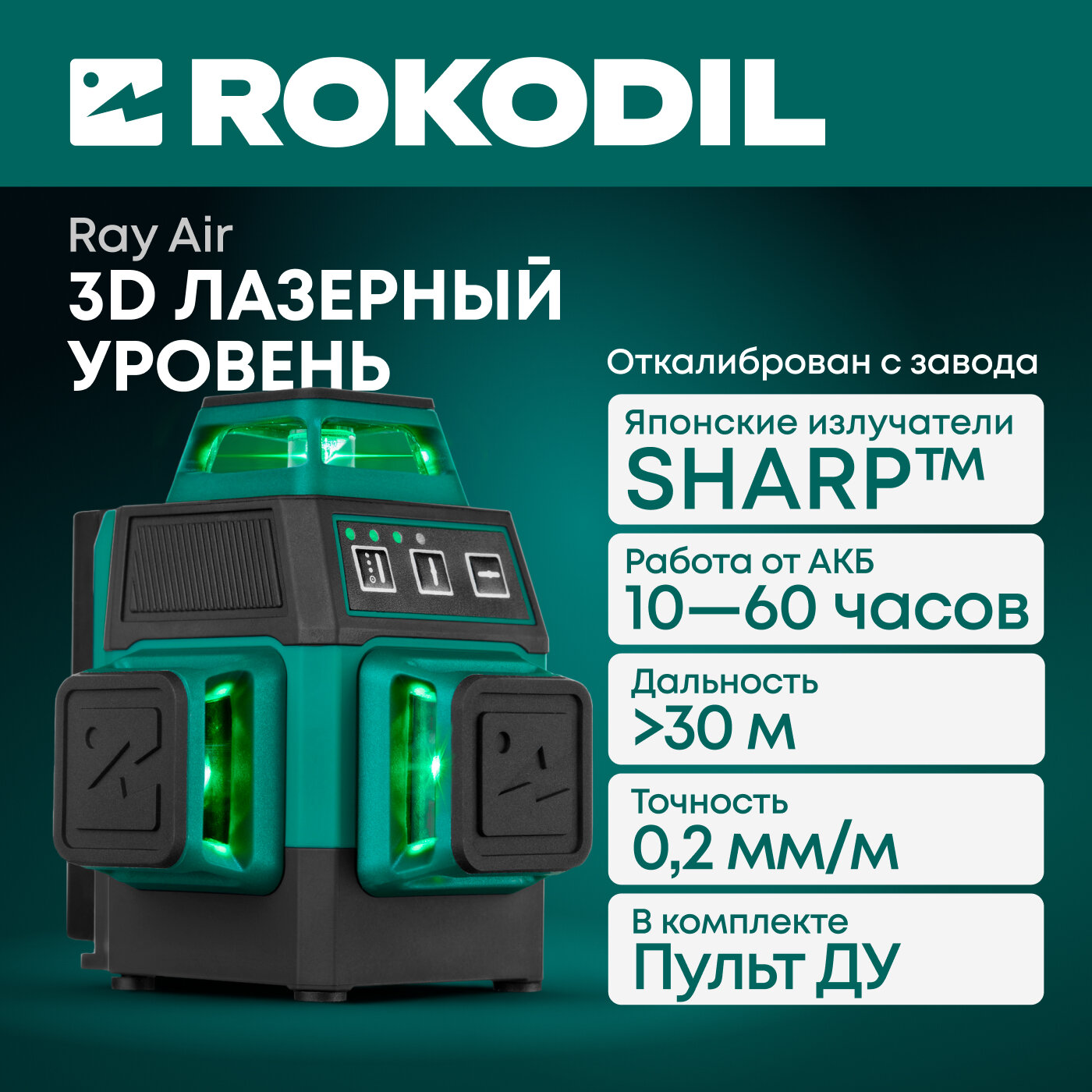 Лазерный уровень 3D Rokodil Ray Air (set мини), нивелир лазерный самовыравнивающийся, зеленый луч, 12 линий на 360 градусов, строительный инструмент интересное: