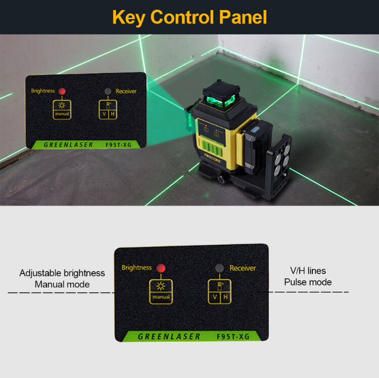 Лазерный уровень/нивелир FIRECORE F95T-XG 12 Линий,Зеленый луч,чемодан,с встроенным L-образным магнитным кронштейном, с приемником FD30