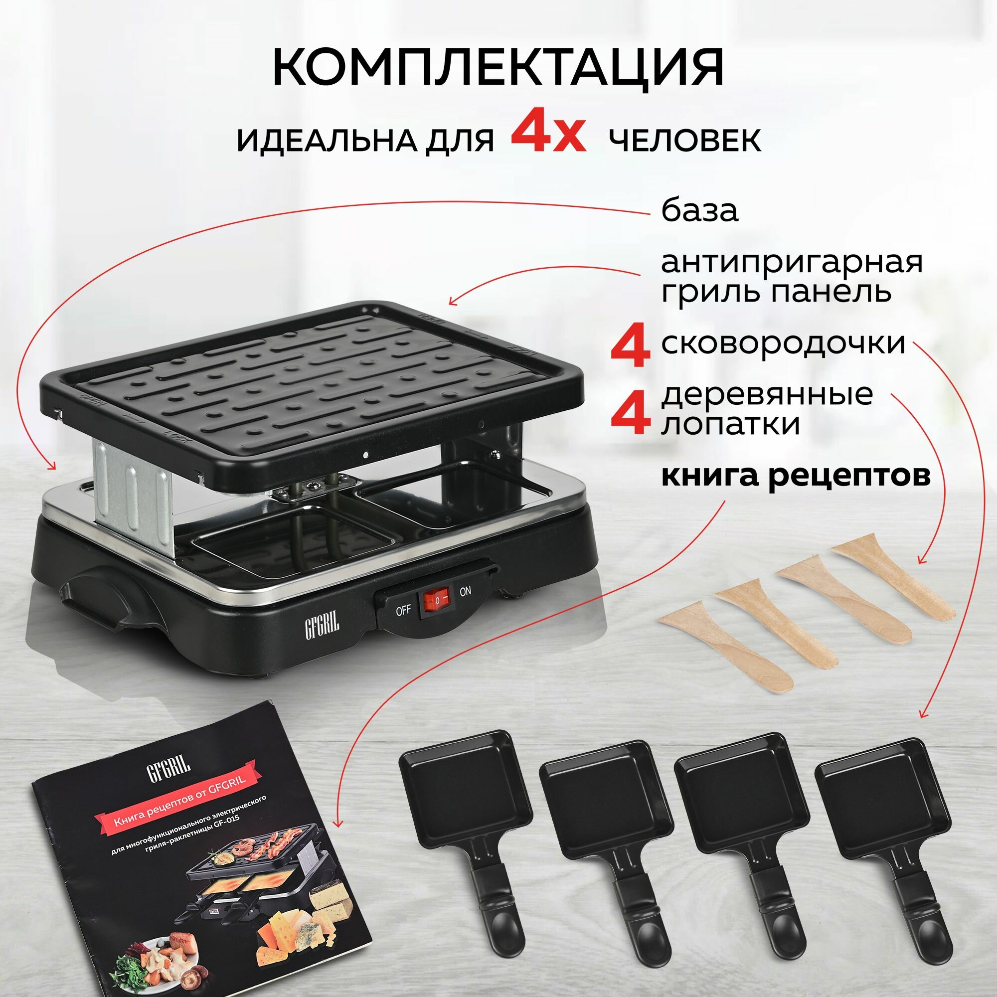 | Количество сковородок в раклетнице | 4 |