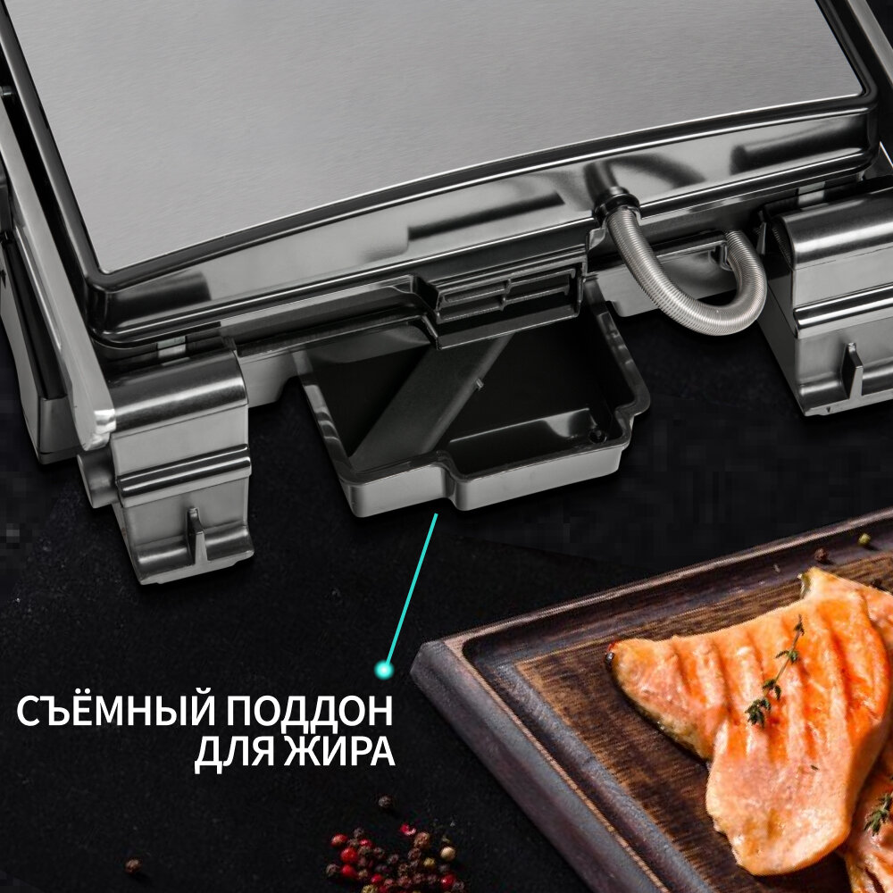 | Особенности | антипригарное покрытие / контактный гриль / поддон для сбора жира / регулировка высоты верхней панели / съемные пластины / антипригарное покрытие / поддон для сбора жира / регулировка высоты верхней панели / съемные пластины |