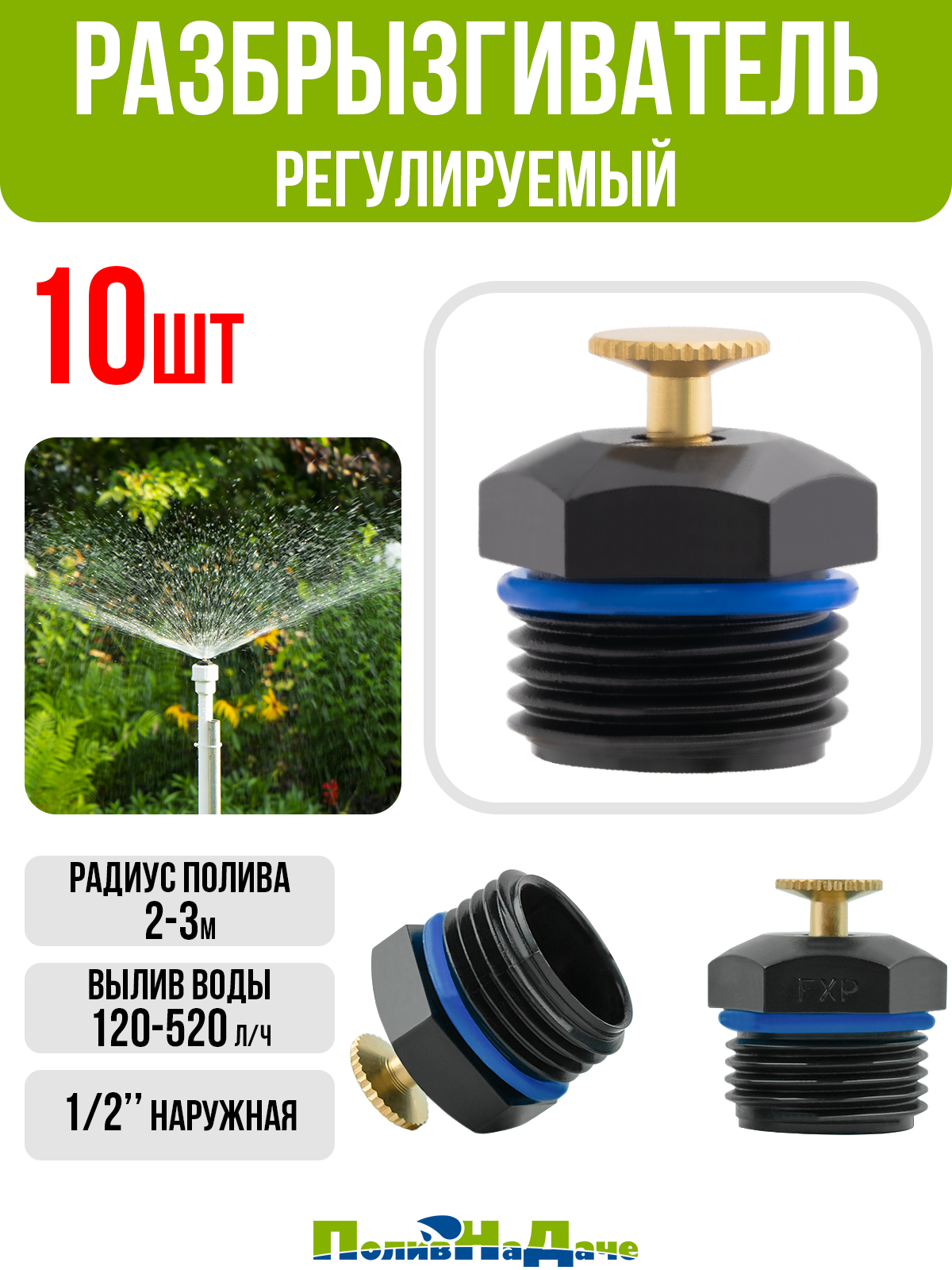 Разбрызгиватель регулируемый 1/2" нар., вылив 120-600 л/ч, радиус 2-3м (10 шт)
