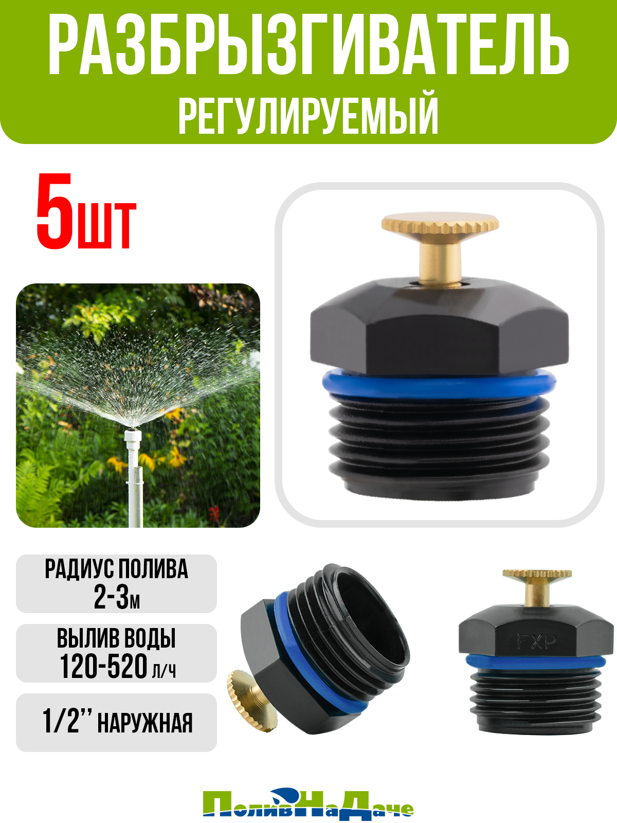 Разбрызгиватель регулируемый 1/2" нар., вылив 120-520 л/ч, радиус 2-3м (5 шт)
