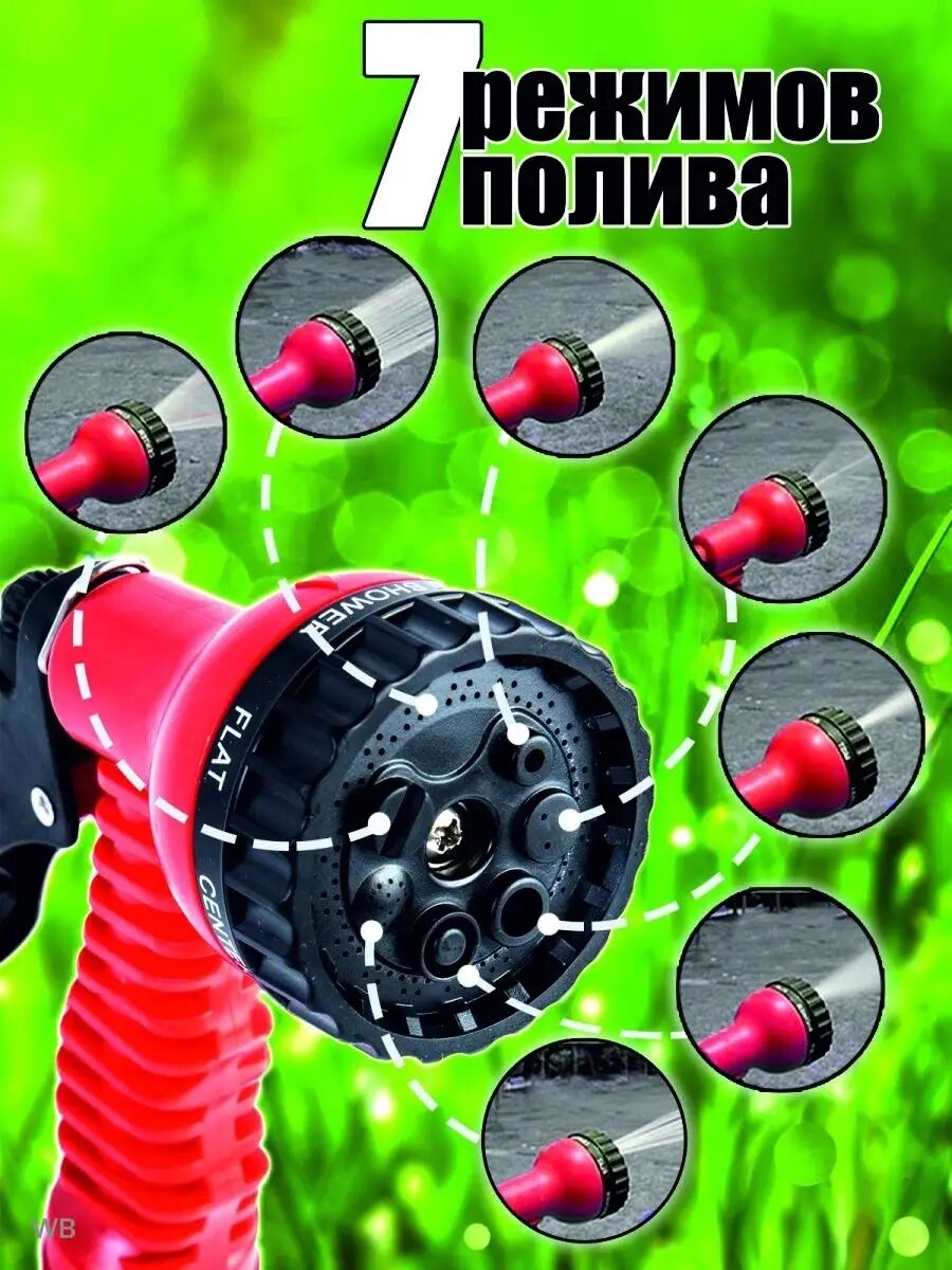Шланг для полива газона садовый растягивающийся гибкий лейка