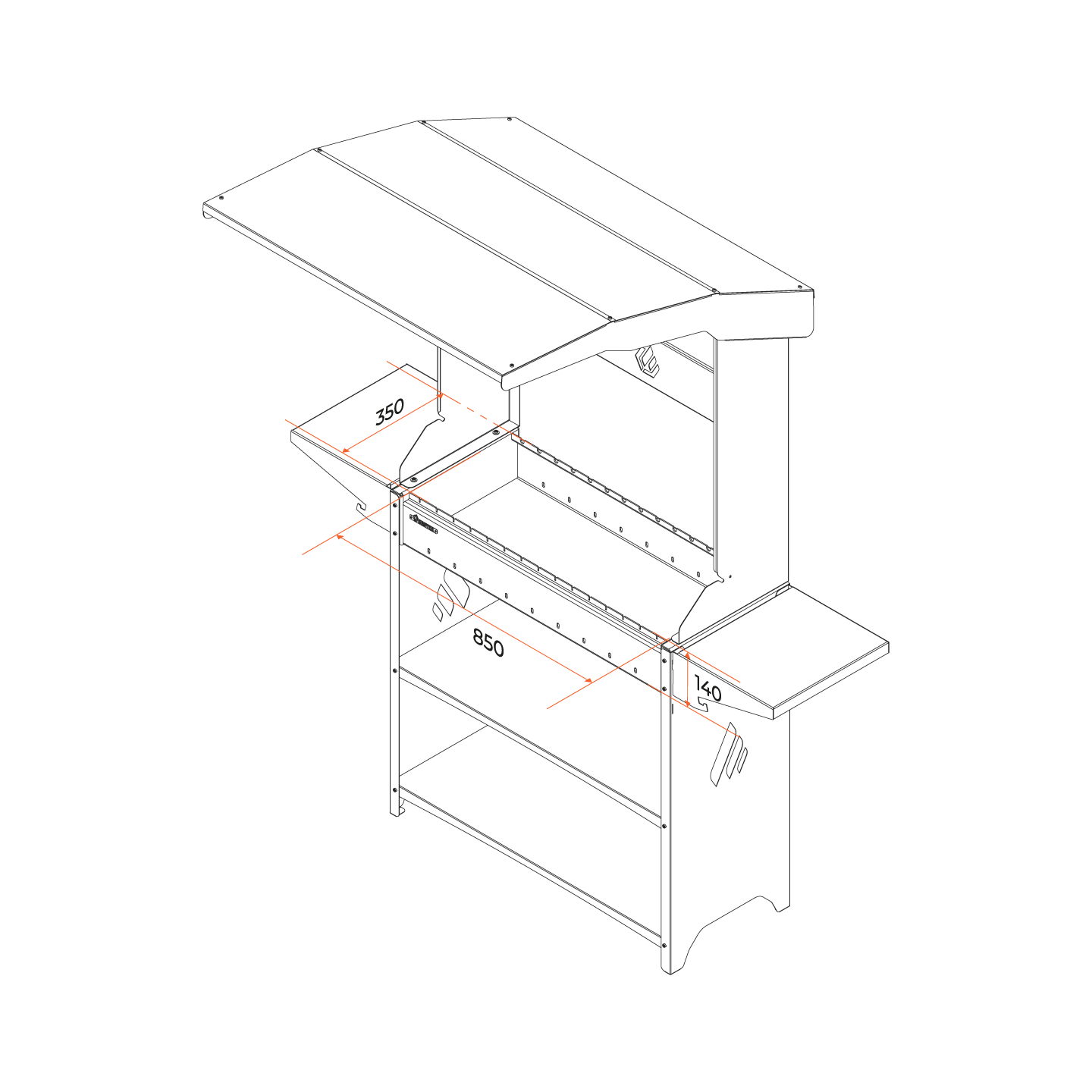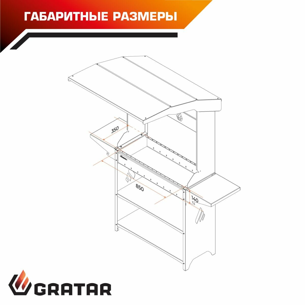 GRATAR Мангал "Professional Standart Roof PSR3000" с крышей, 158,2 х 102,6 х 201 см, 3 мм, полки