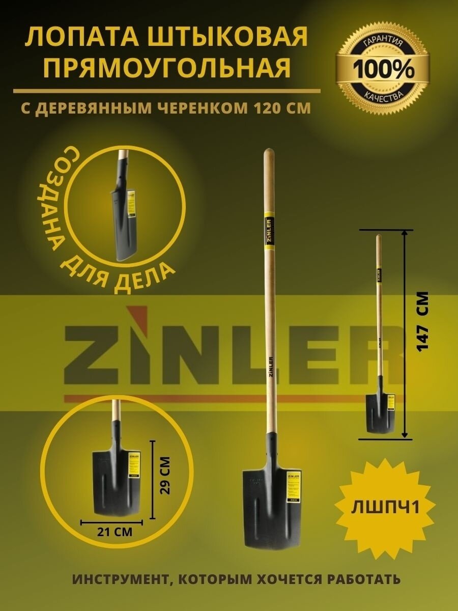 Лопата ZINLER штыковая прямоугольная с деревянным черенком 1200 мм, ЛШПЧ1 интересное: