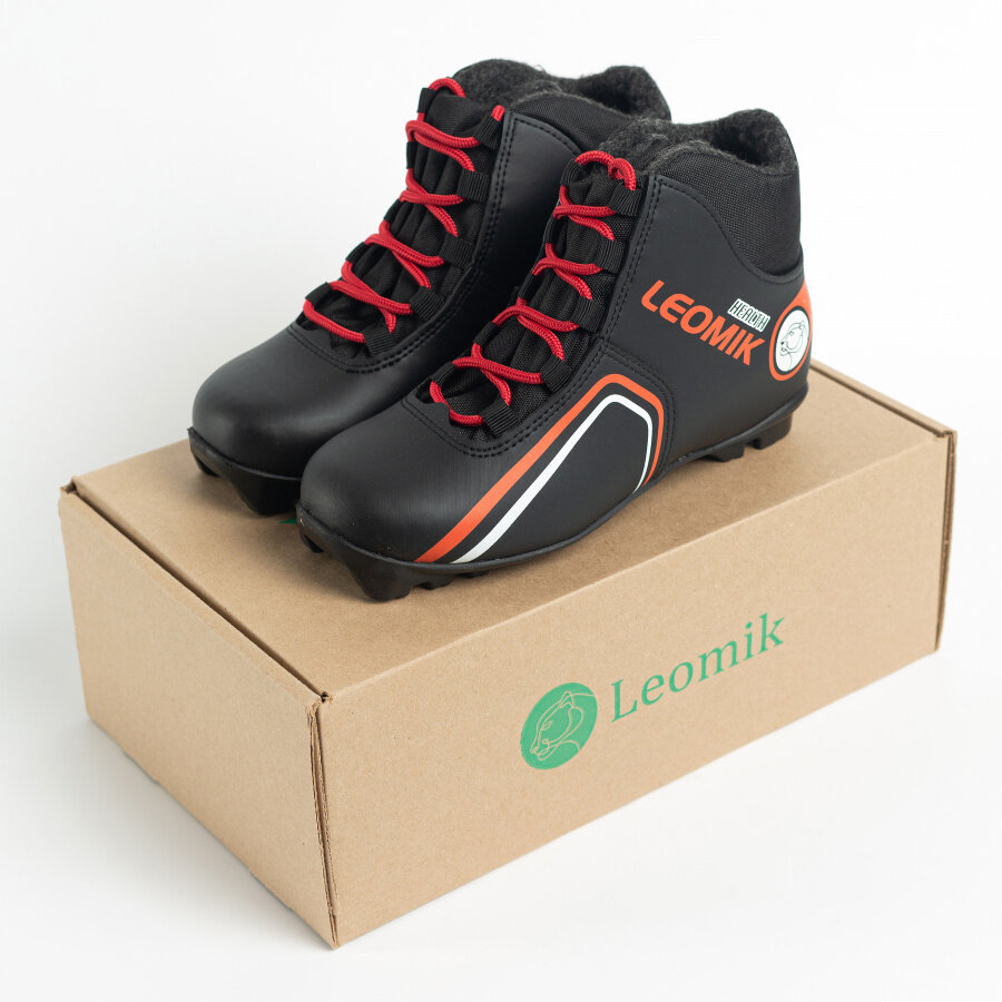 Ботинки лыжные детские Leomik Health (red) черные размер 33 для беговых прогулочных лыж крепление NNN