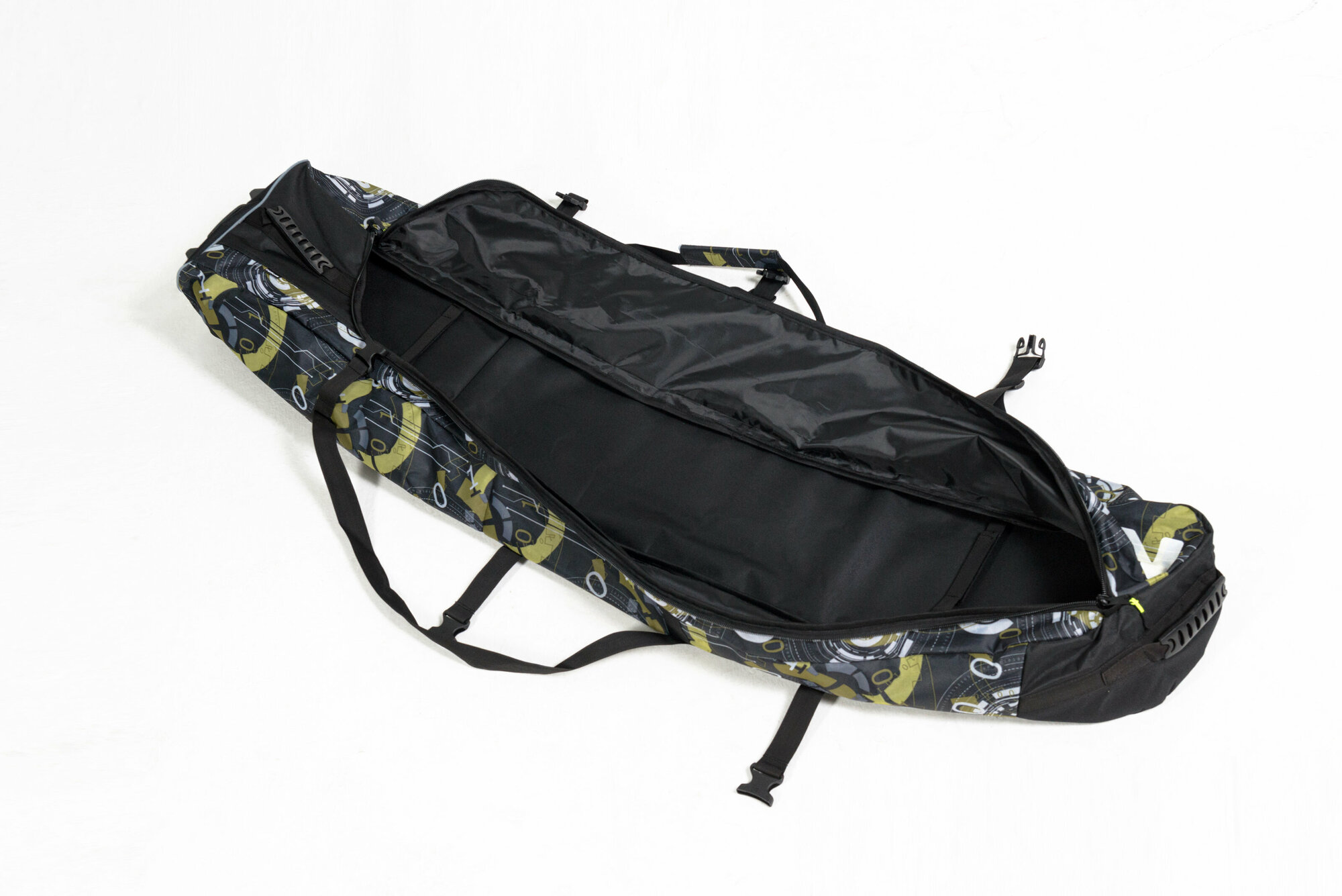 Чехол для горных лыж и сноубордов Nordic на колесах черный с зелено-серым узором 145 см
