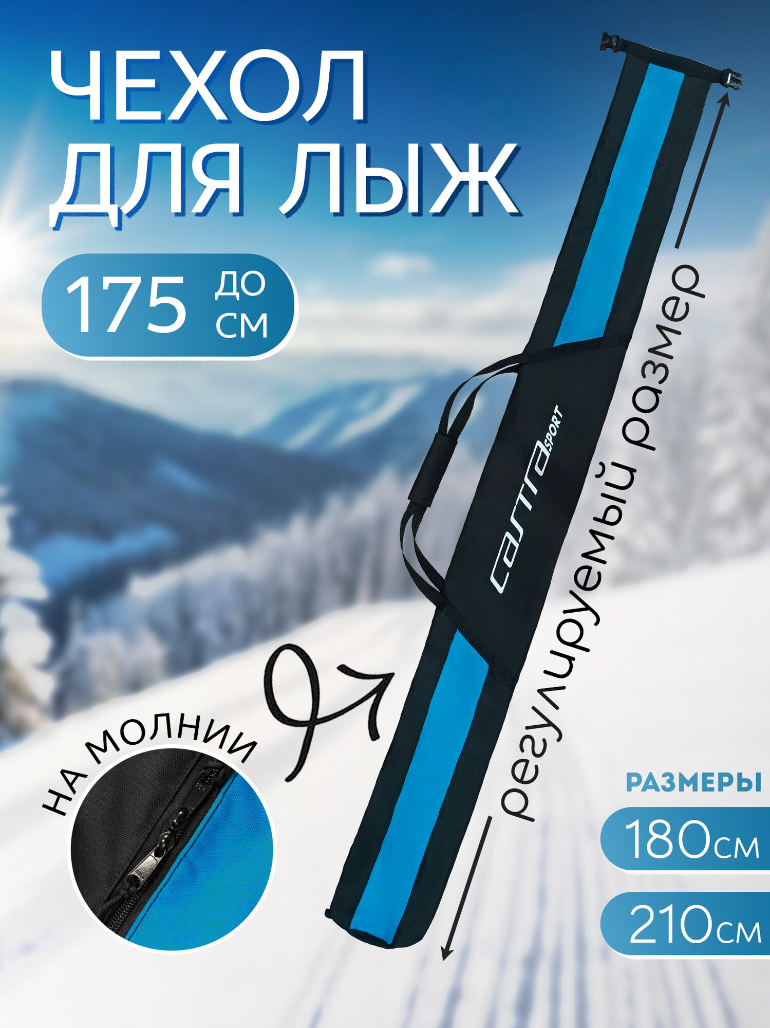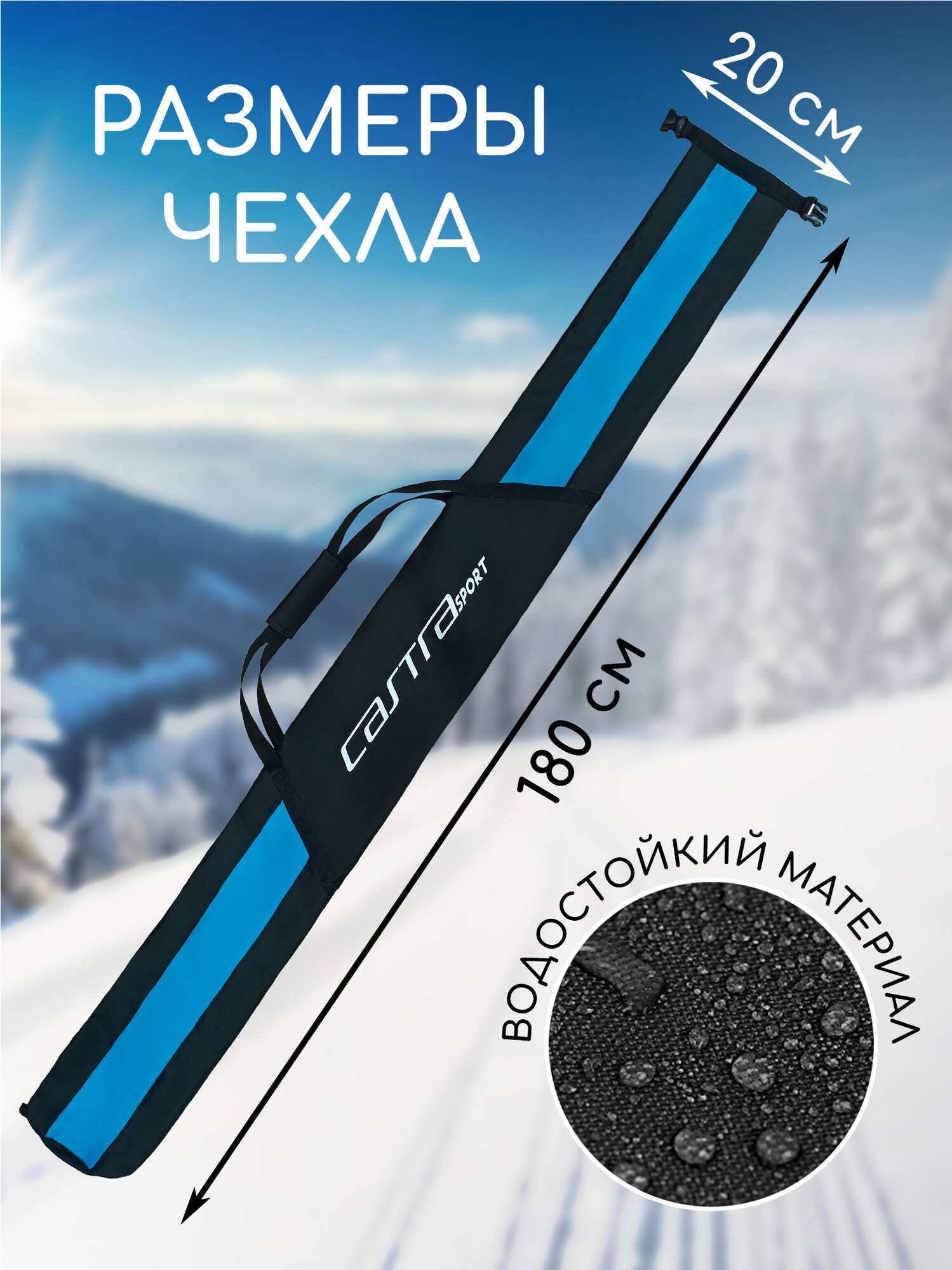 Чехол для лыж Castra Cruise, 180см, черно-синий, водонепроницаемый, оксфорд интересное: