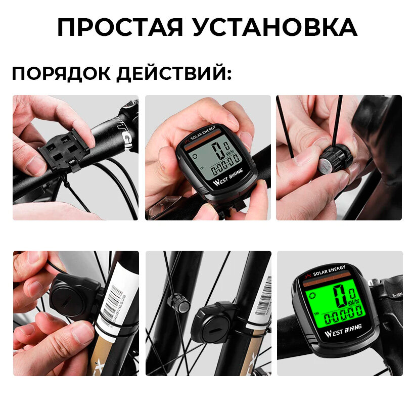 Велосипедный компьютер на солнечной батарее WEST BIKING, Черный интересное: