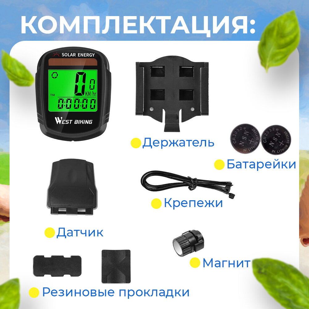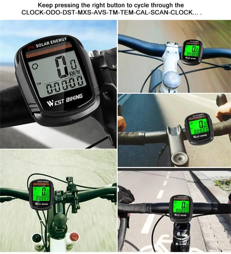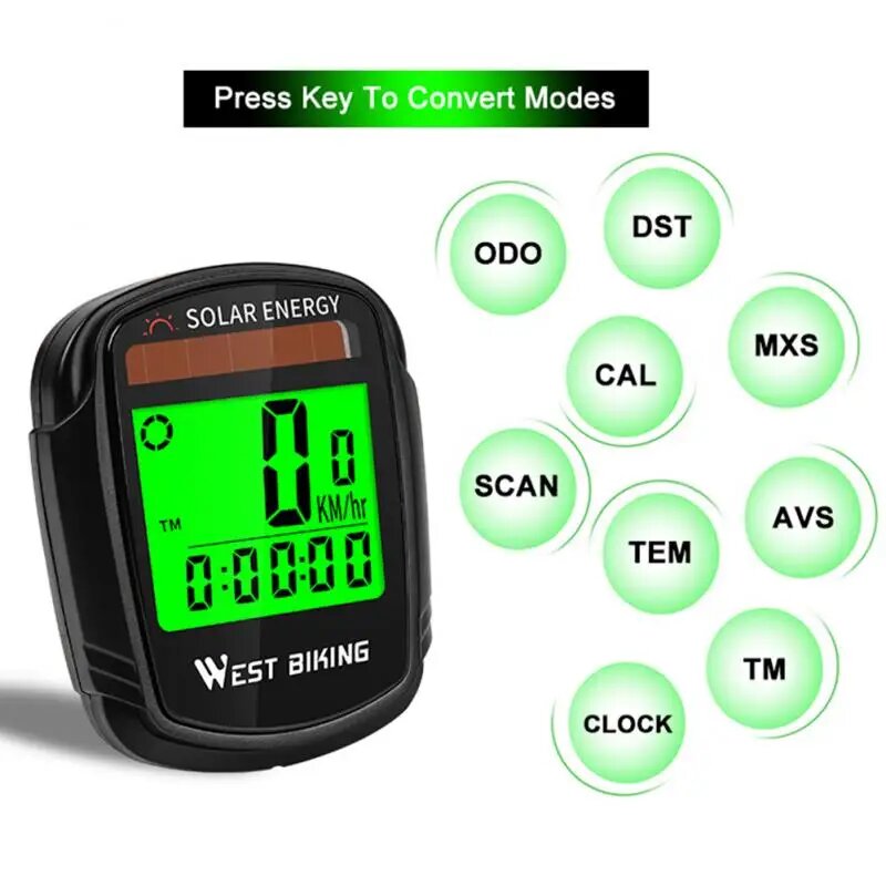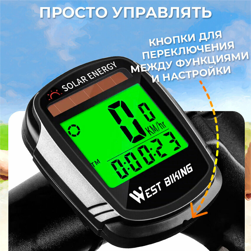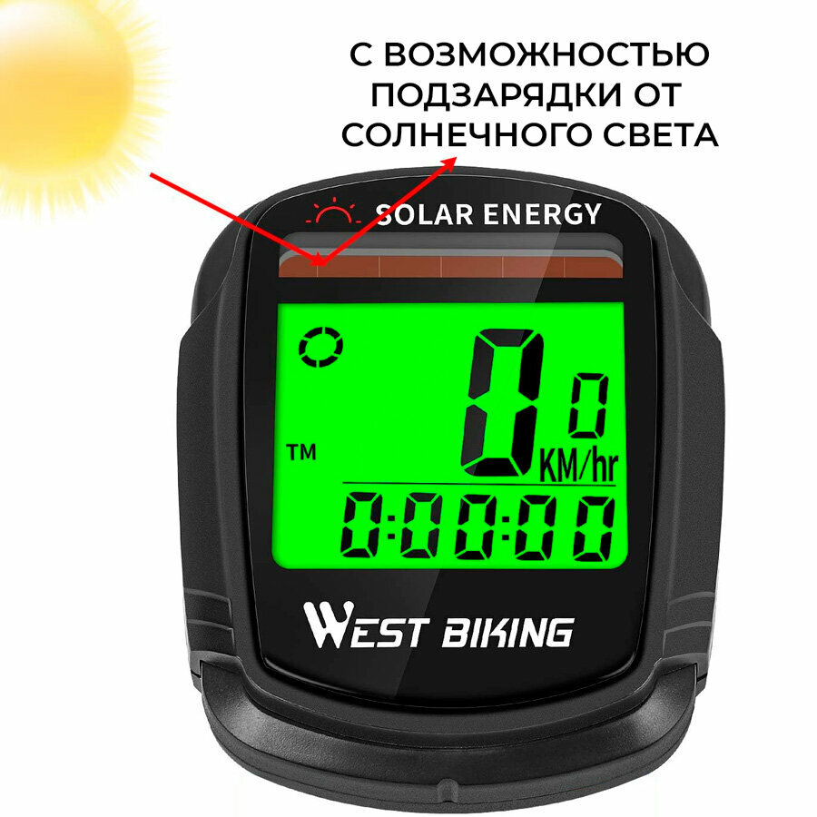 Велокомпьютер беспроводной на солнечной батарее West Biking со спидометром, счетчиком калорий, подсветкой