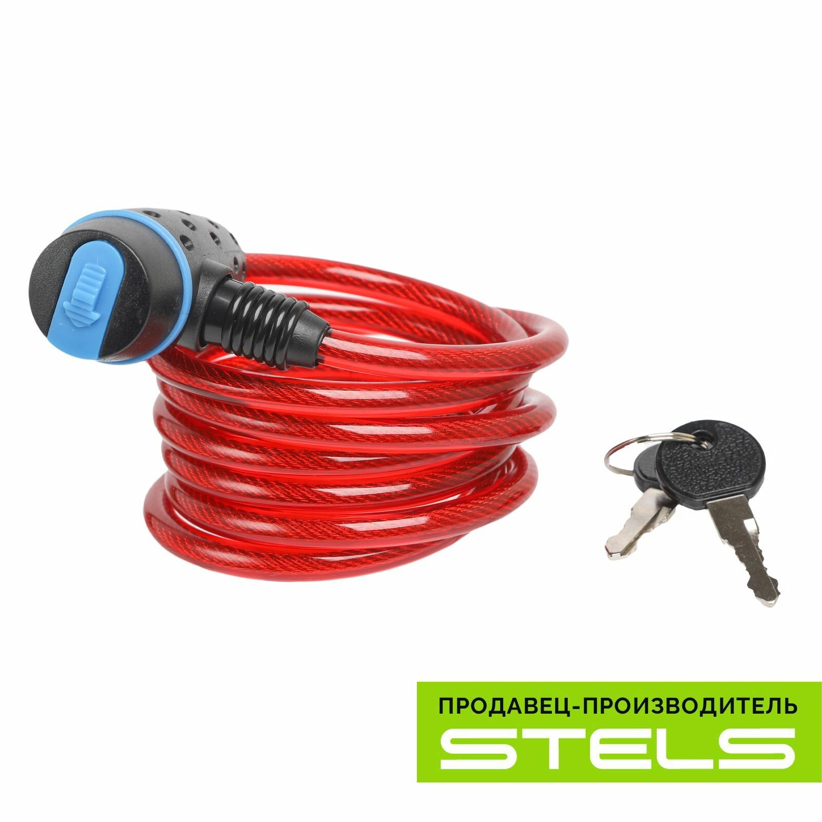 Аксессуары для вело-техники (STELS Трос-замок 87318 с ключом со стальн. тросом 8х1800мм, чёрно-красный 540056*LU059792)