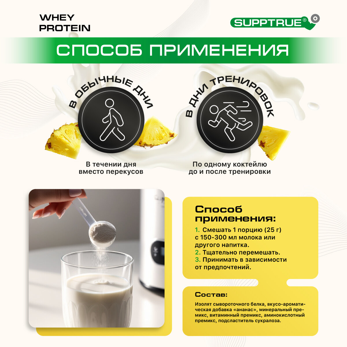 Купить Supptrue Протеин изолят сывороточного белка со вкусом Ананас 1000г