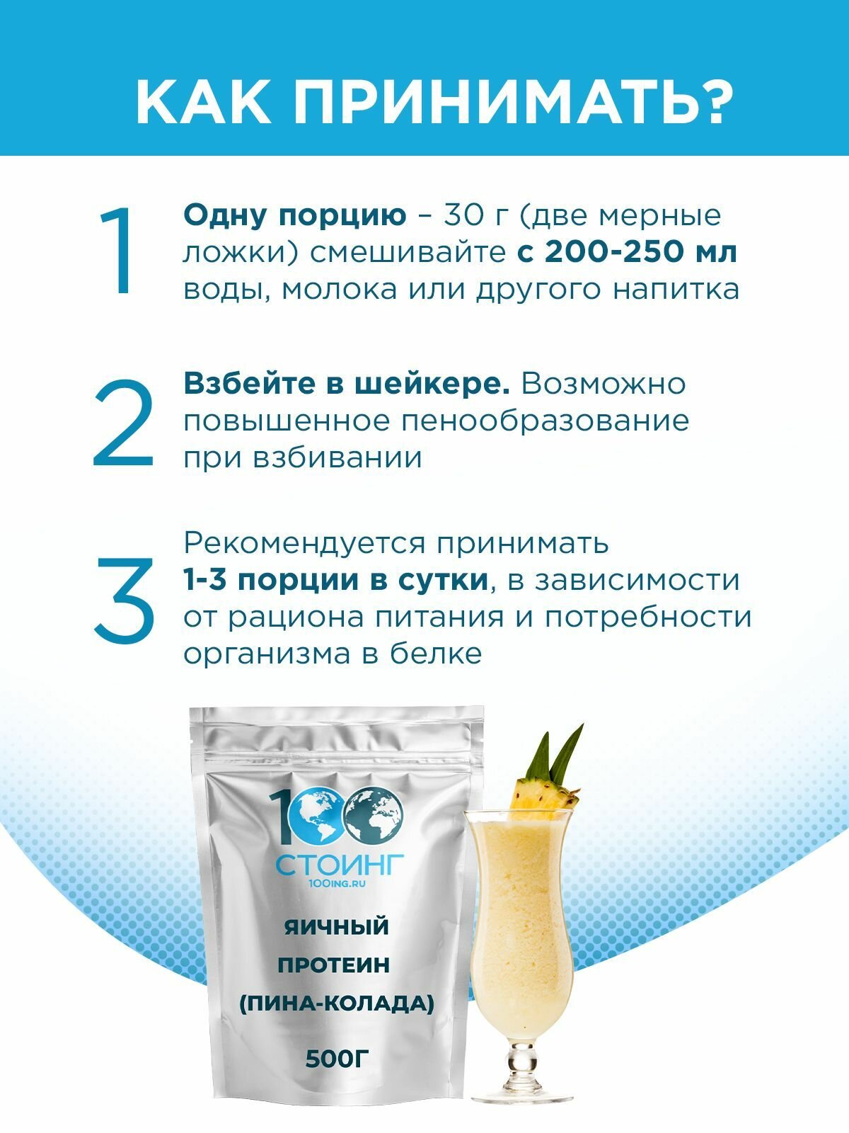 Купить Яичный Протеин Пина Колада для похудения и набора мышечной массы, 500г / Egg Protein