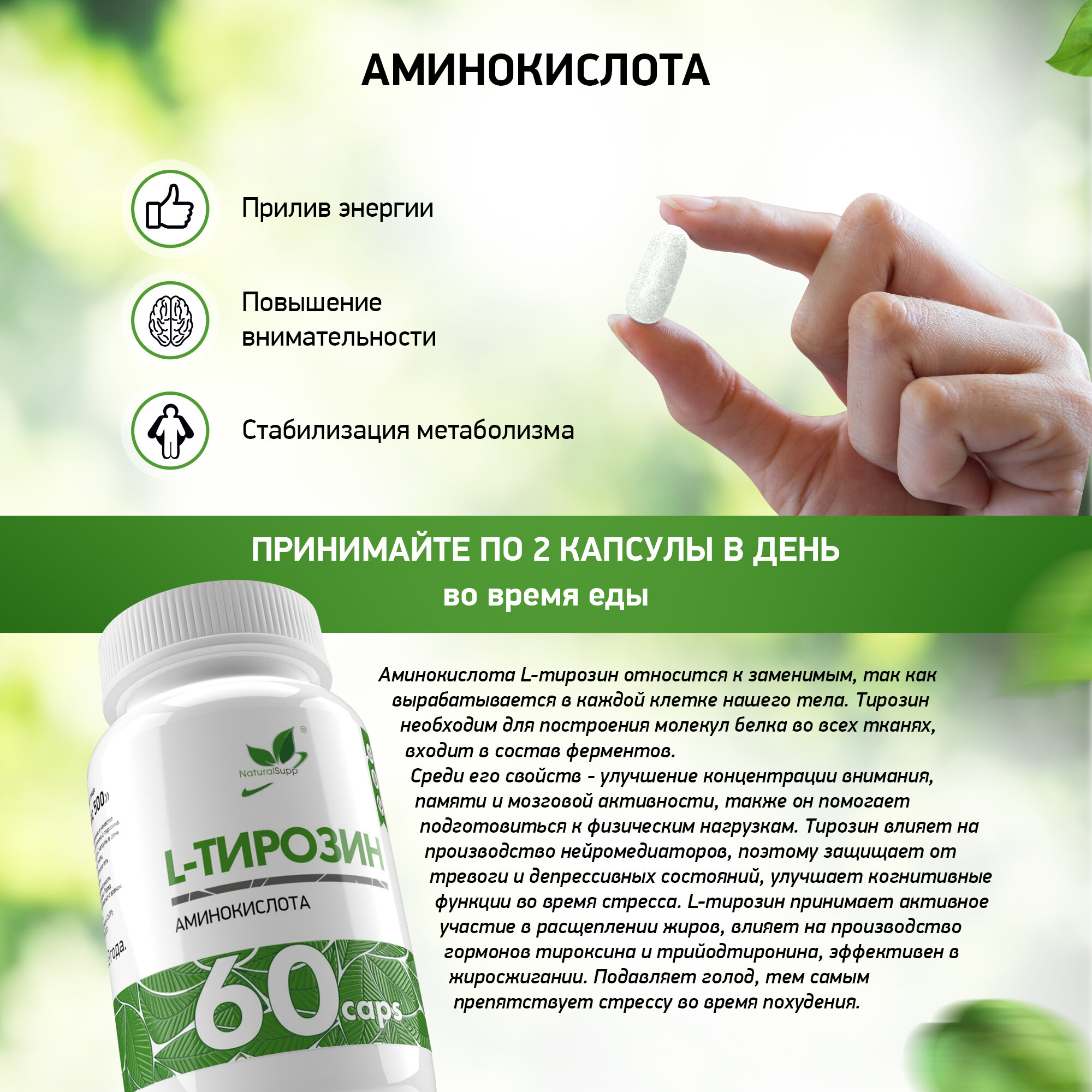 Л-Тирозин NATURALSUPP L-Tyrosine 500мг, 60 капсул интересное: