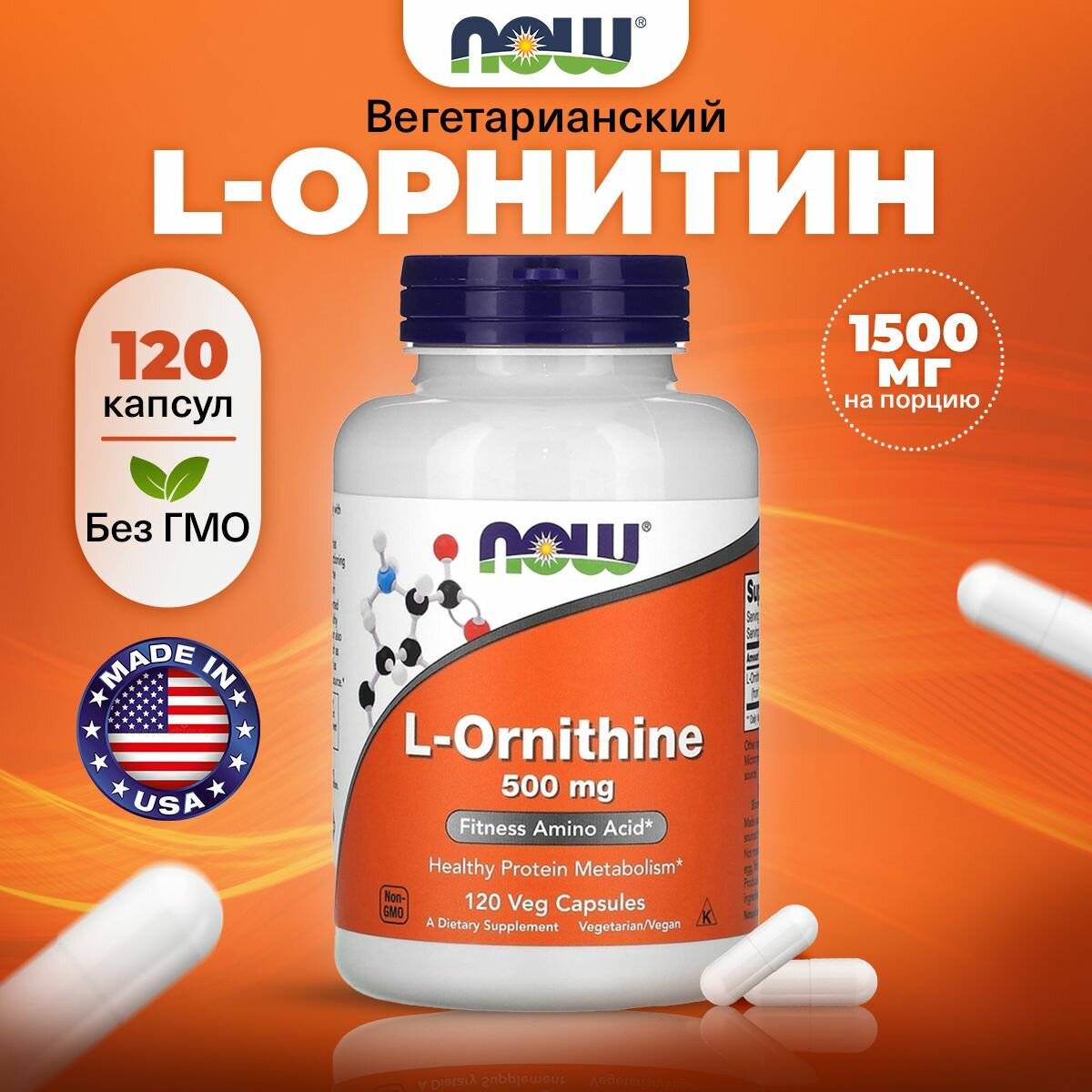 Купить NOW L-Ornithine 500 mg, Аминокислота L-орнитин, 120 капсул