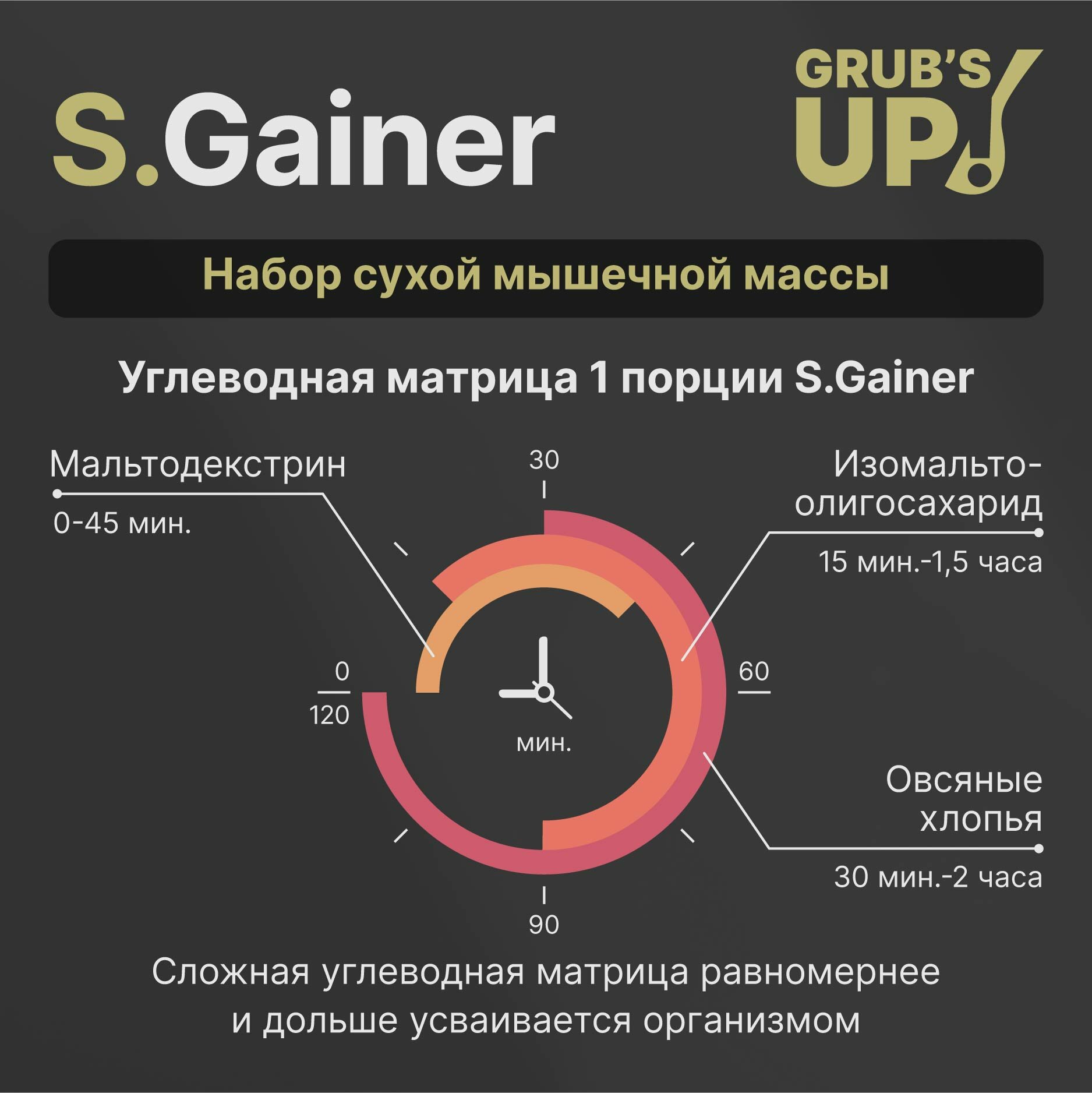 СохранитьБелково-углеводный коктейль (гейнер) Grub's up! S.Gainer апельсин 1кг интересное: