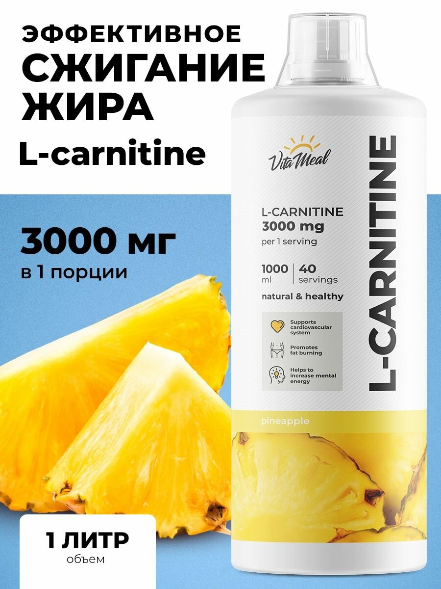 Купить Л карнитин жидкий VitaMeal L-Carnitine 3000 mg / Жиросжигатель, 1000 мл, Ананас
