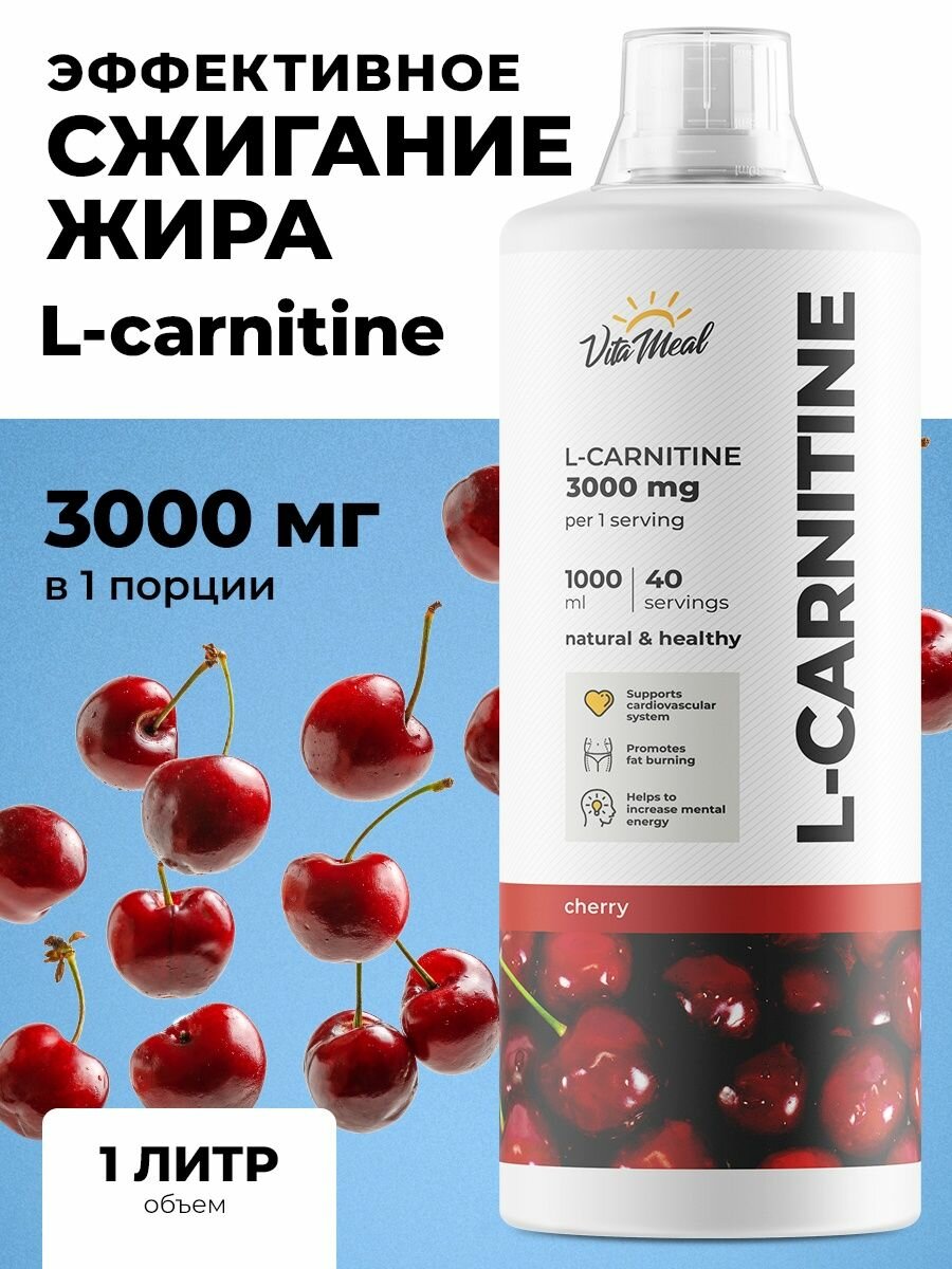 Купить Л карнитин жидкий VitaMeal L-Carnitine 3000 mg / Жиросжигатель, 1000 мл, Вишня