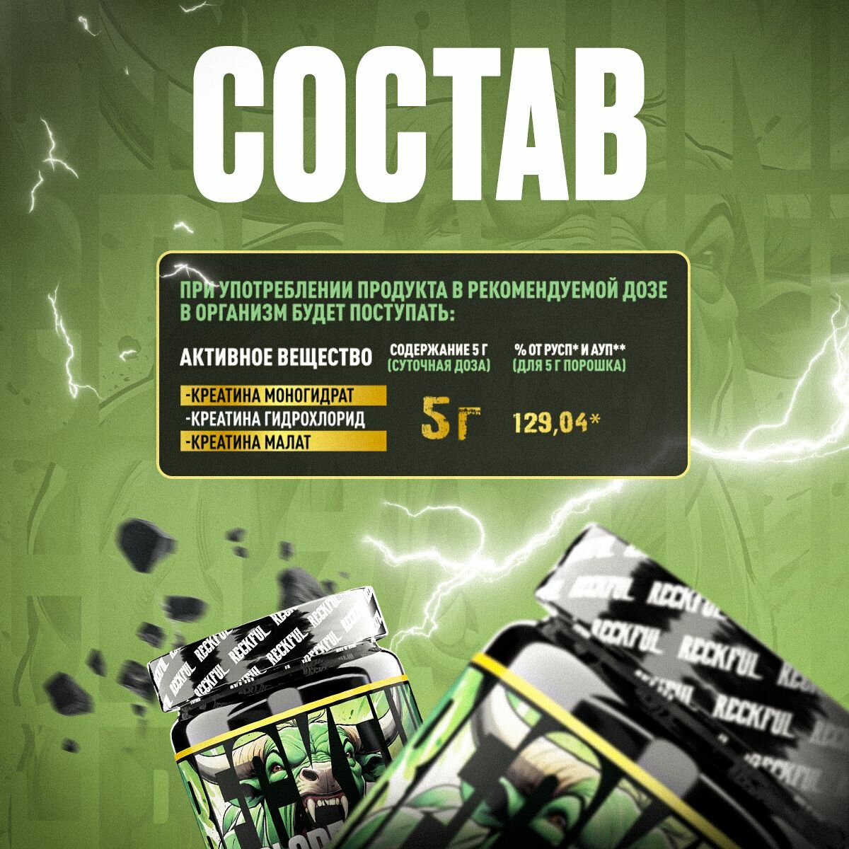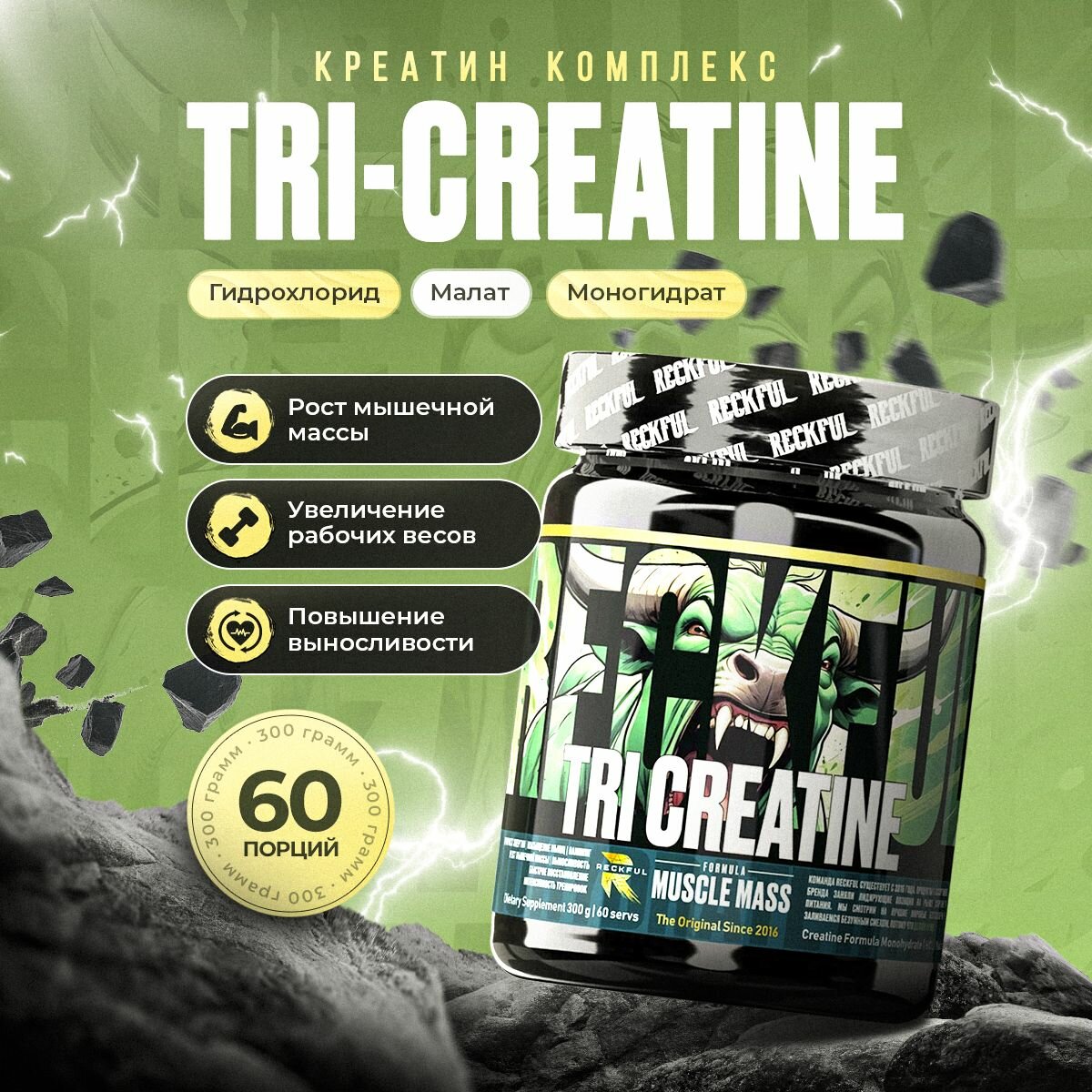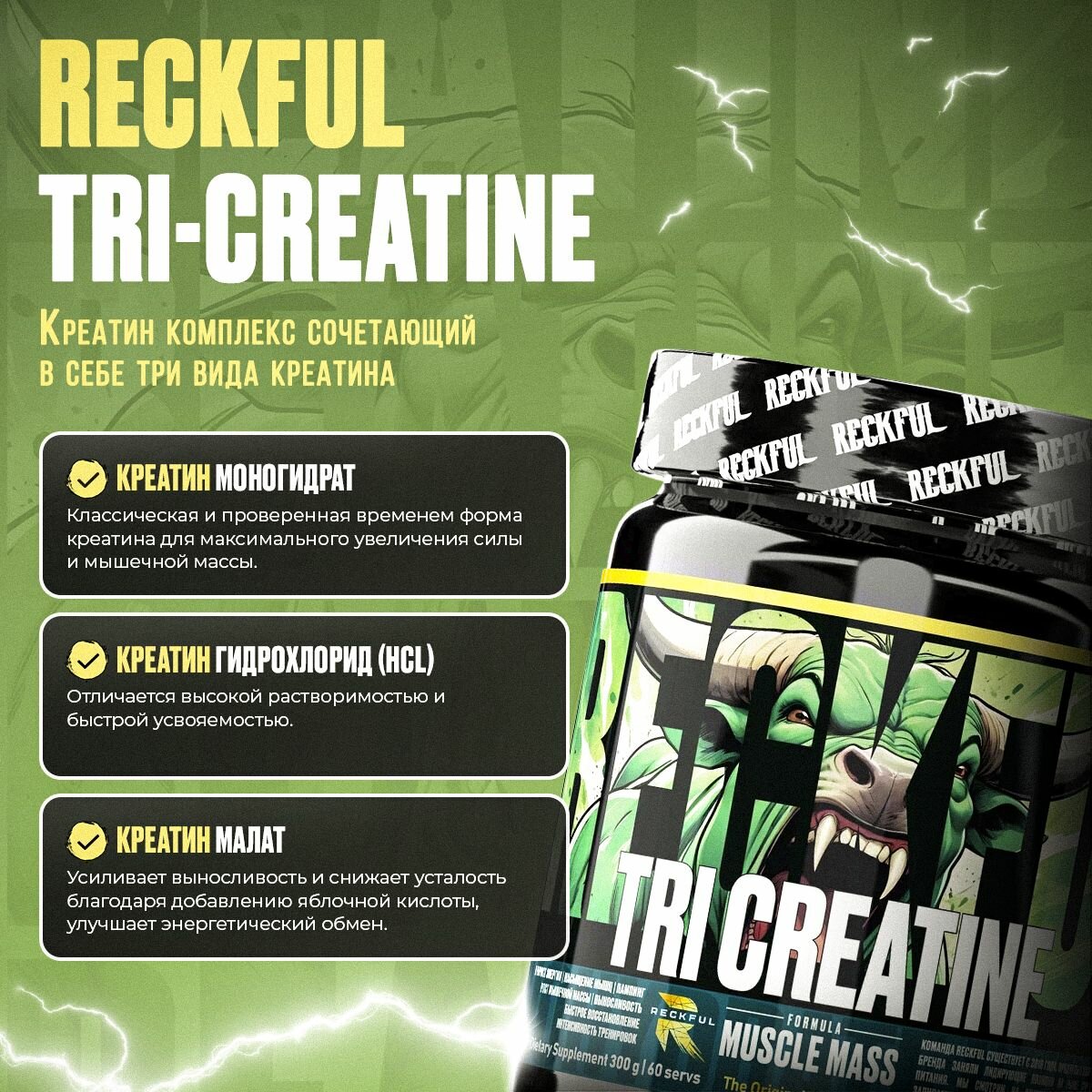 Креатин Комплекс Reckful Tri-Creatine интересное:
