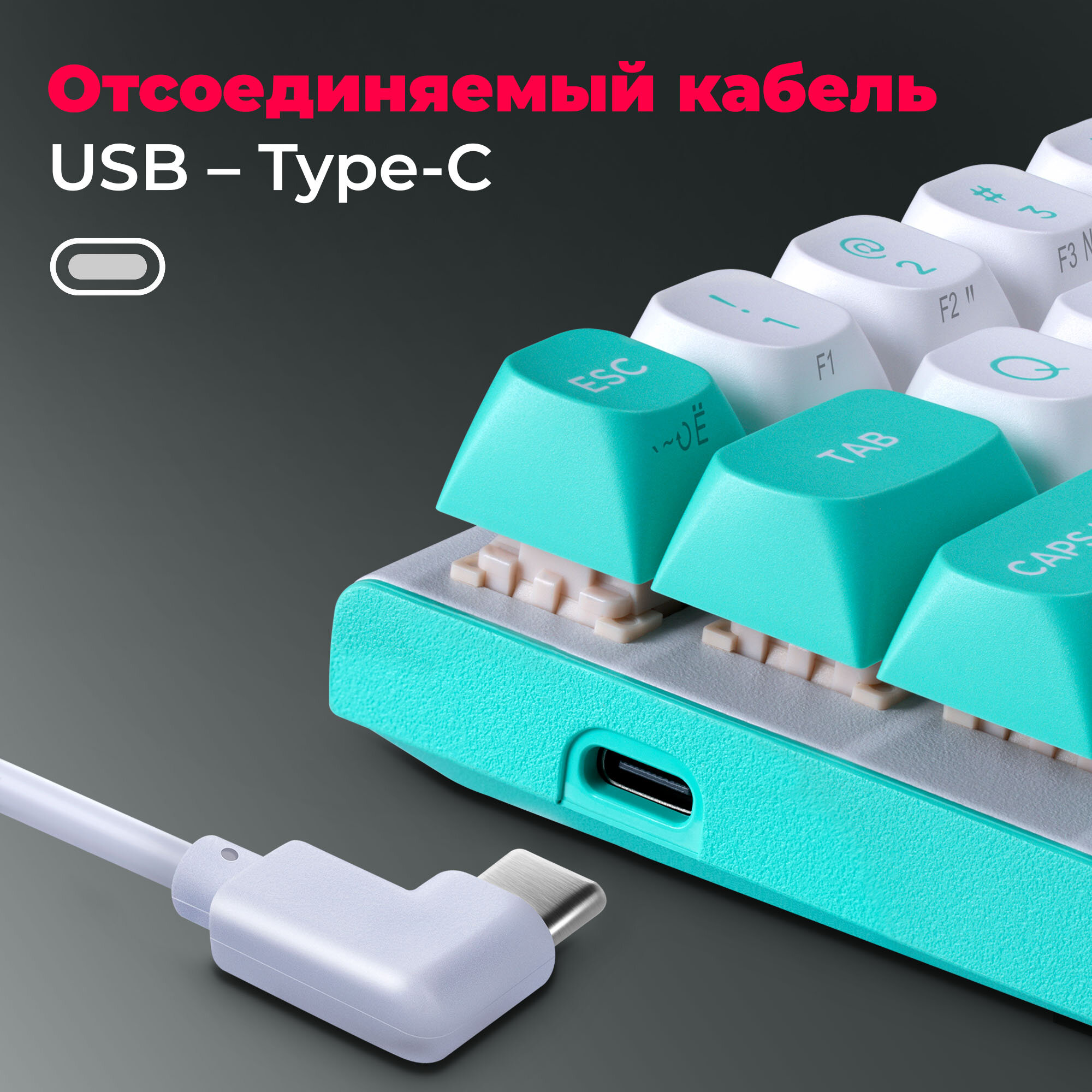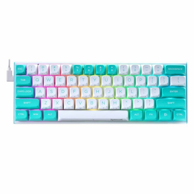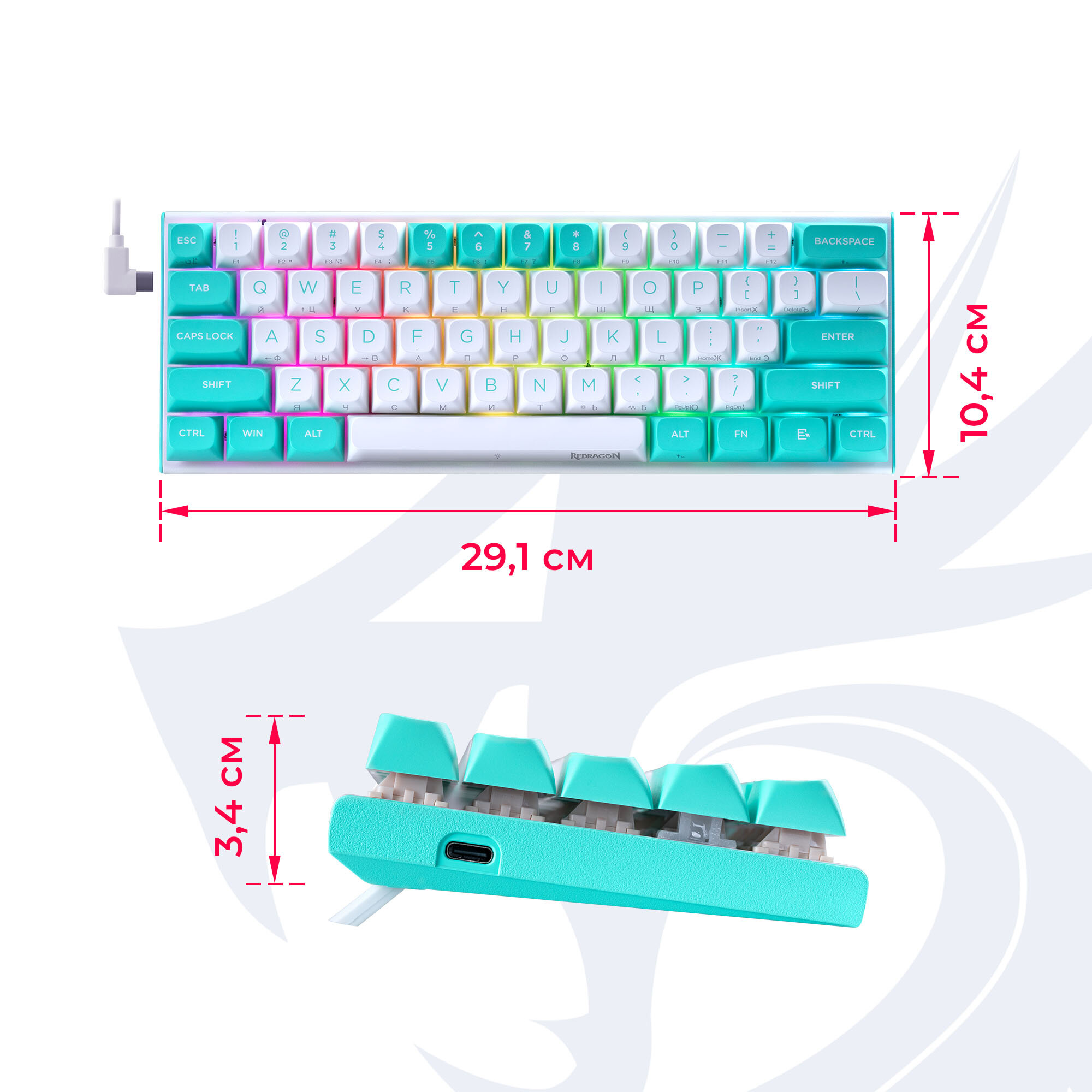 Клавиатура Redragon Fidd RU проводная белый/бирюзовый (72187)