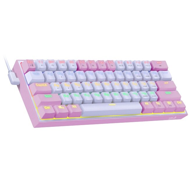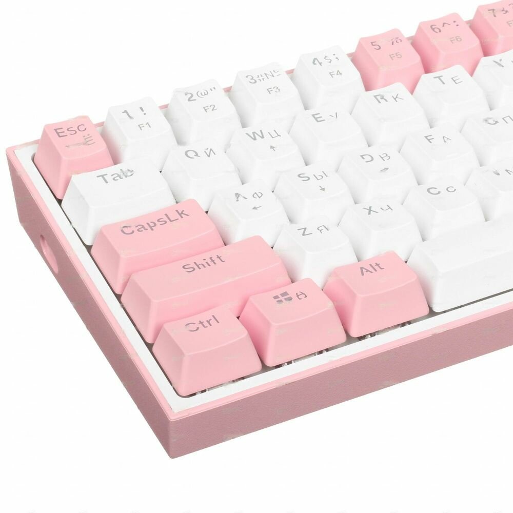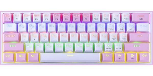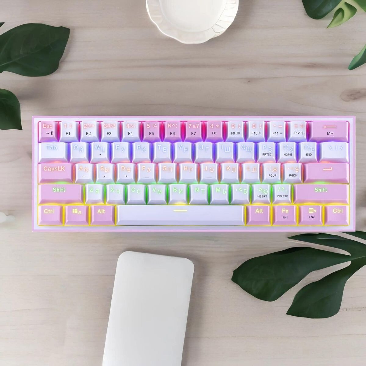 Игровая клавиатура механическая Redragon Fizz Радужная тихая, бело-розовая компактная (60%)