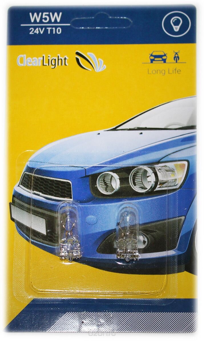 Лампа W5W (CLEARLIGHT) 24V T10 (блистер 2 ШТ.) CLEARLIGHT CLW5W24V2B