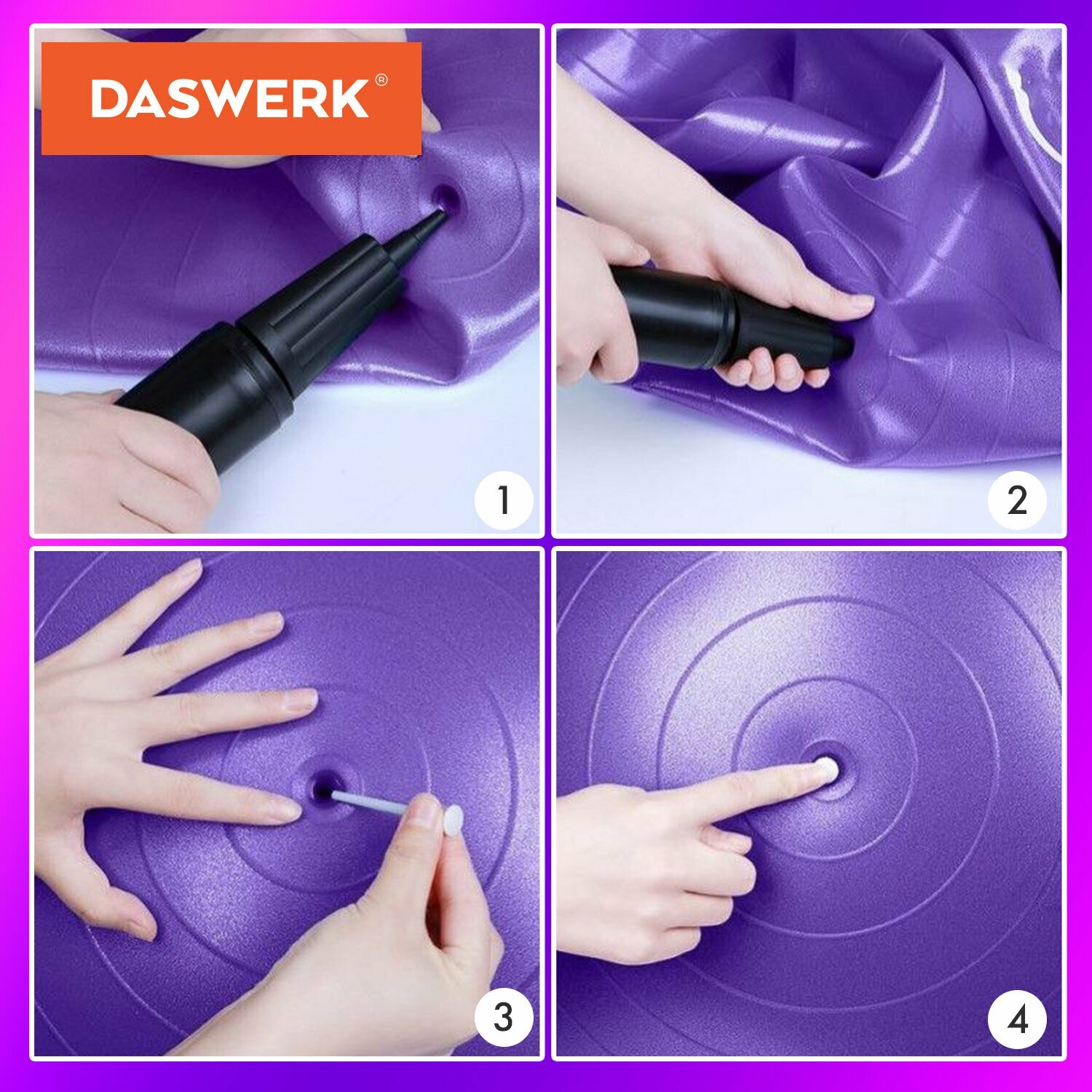 Купить Мяч гимнастический (фитбол) 65 см с эффектом "антивзрыв", с ручным насосом, фиолетовый, DASWERK, 680017 (680017)