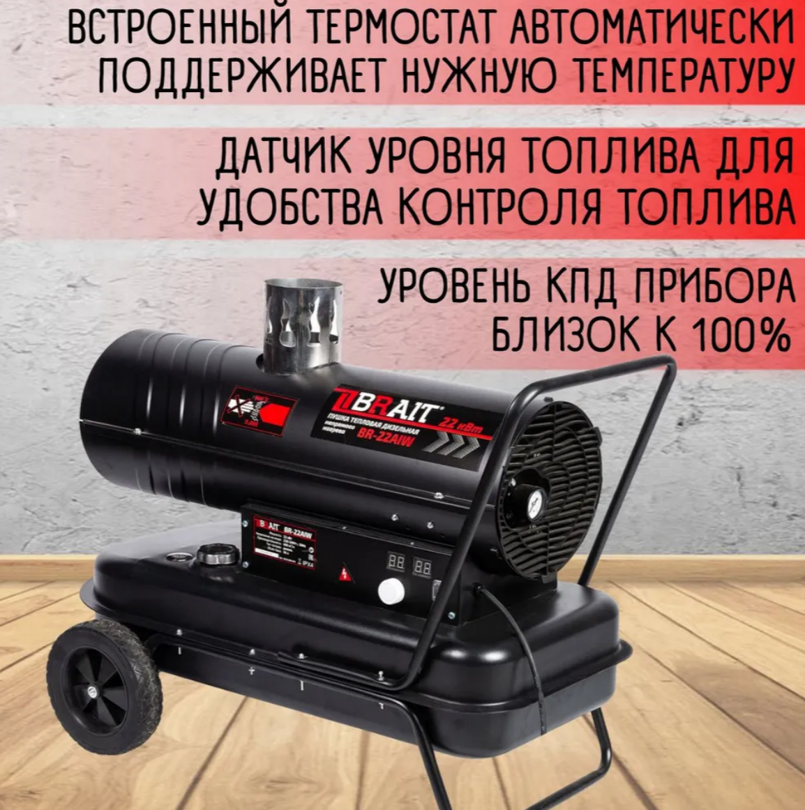 Дизельная тепловая пушка BRAIT BR-22AIW 22 кВт, 25 л, 600 м³/ч, непрямой нагрев