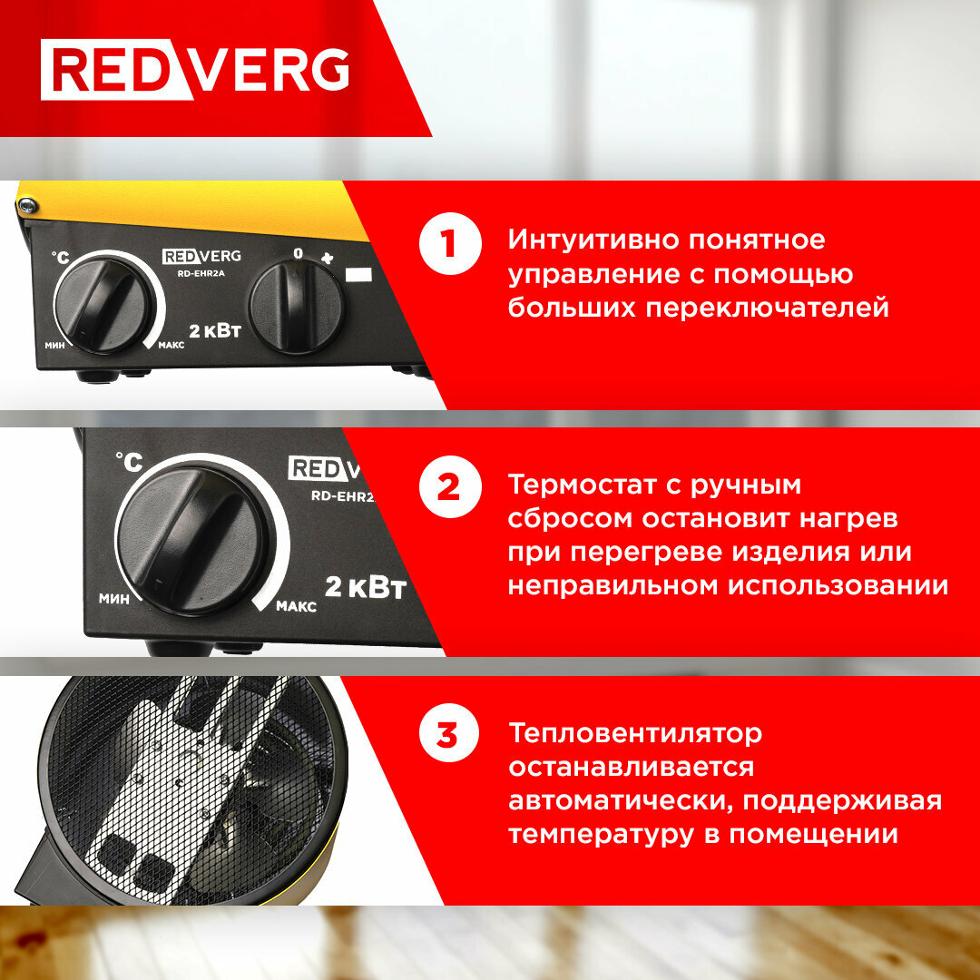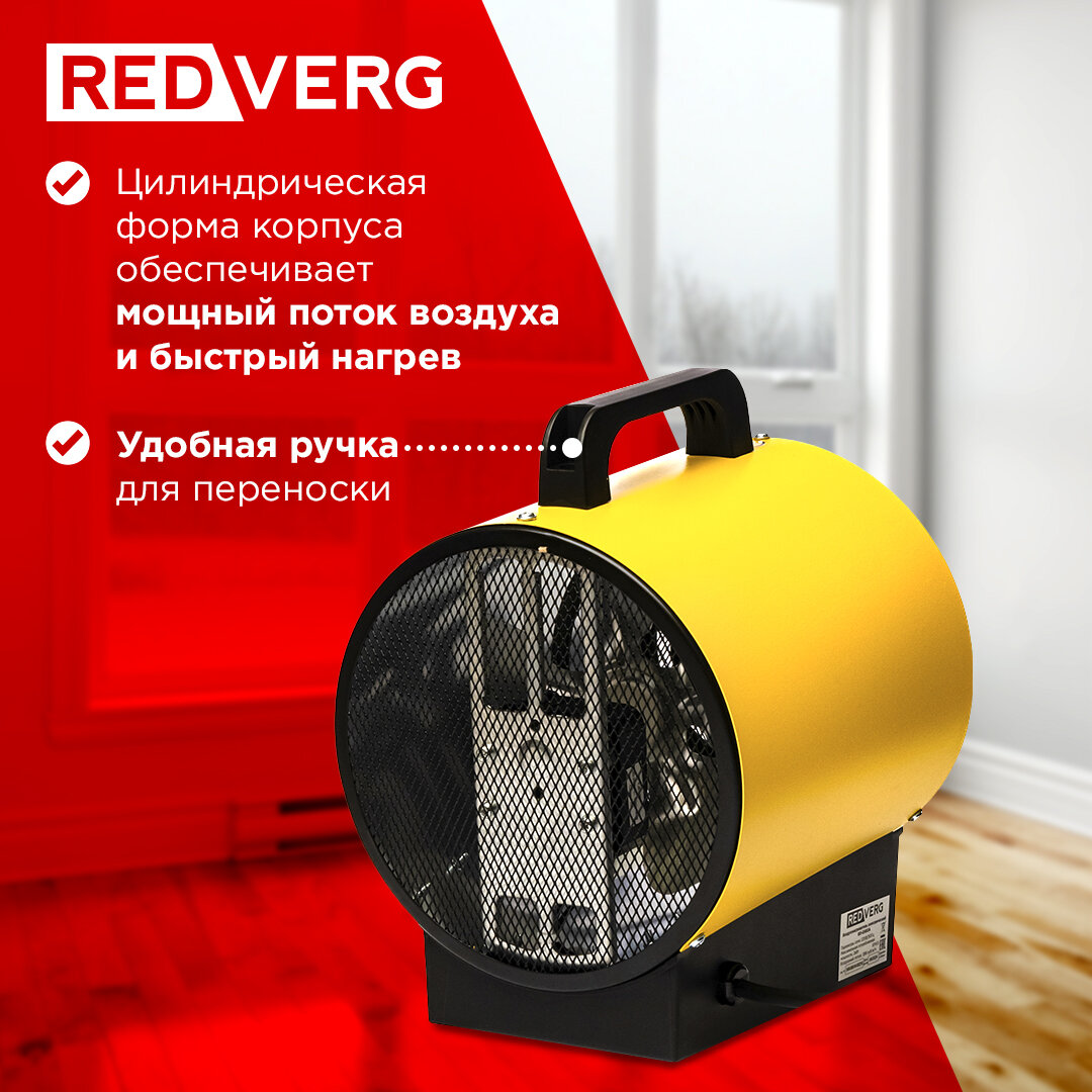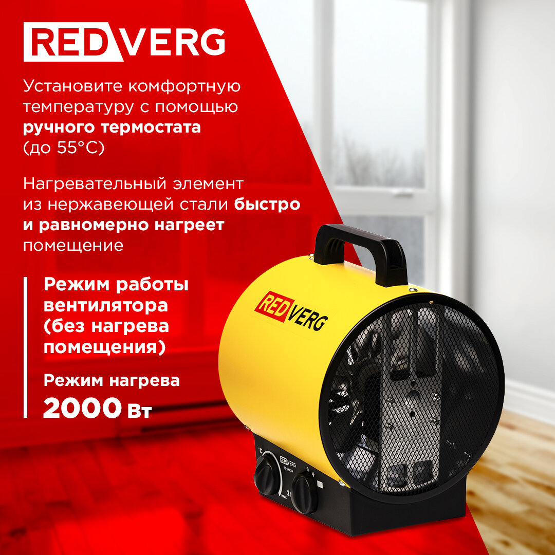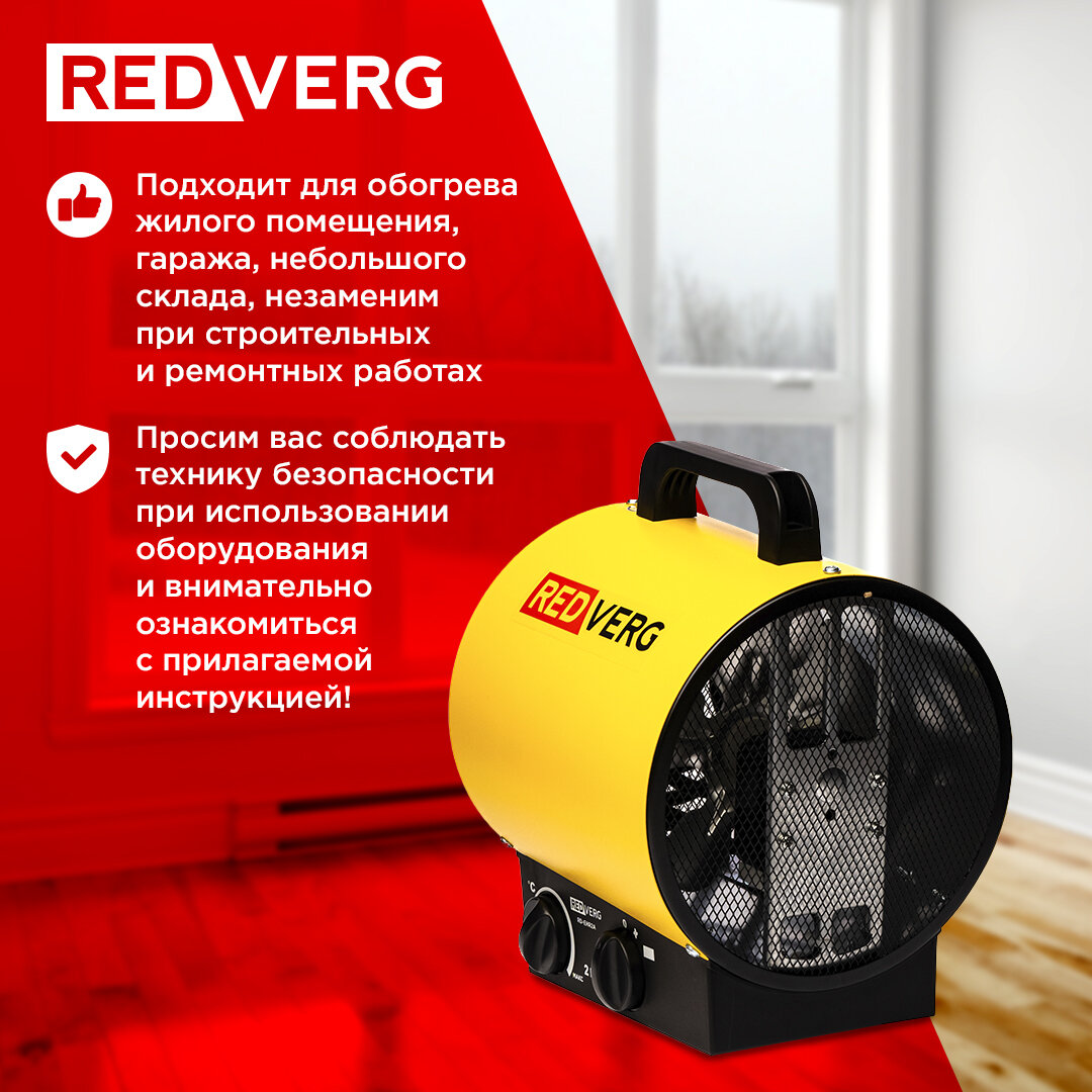 Электрический воздухонагреватель тепловая пушка REDVERG RD-EHR2A интересное: