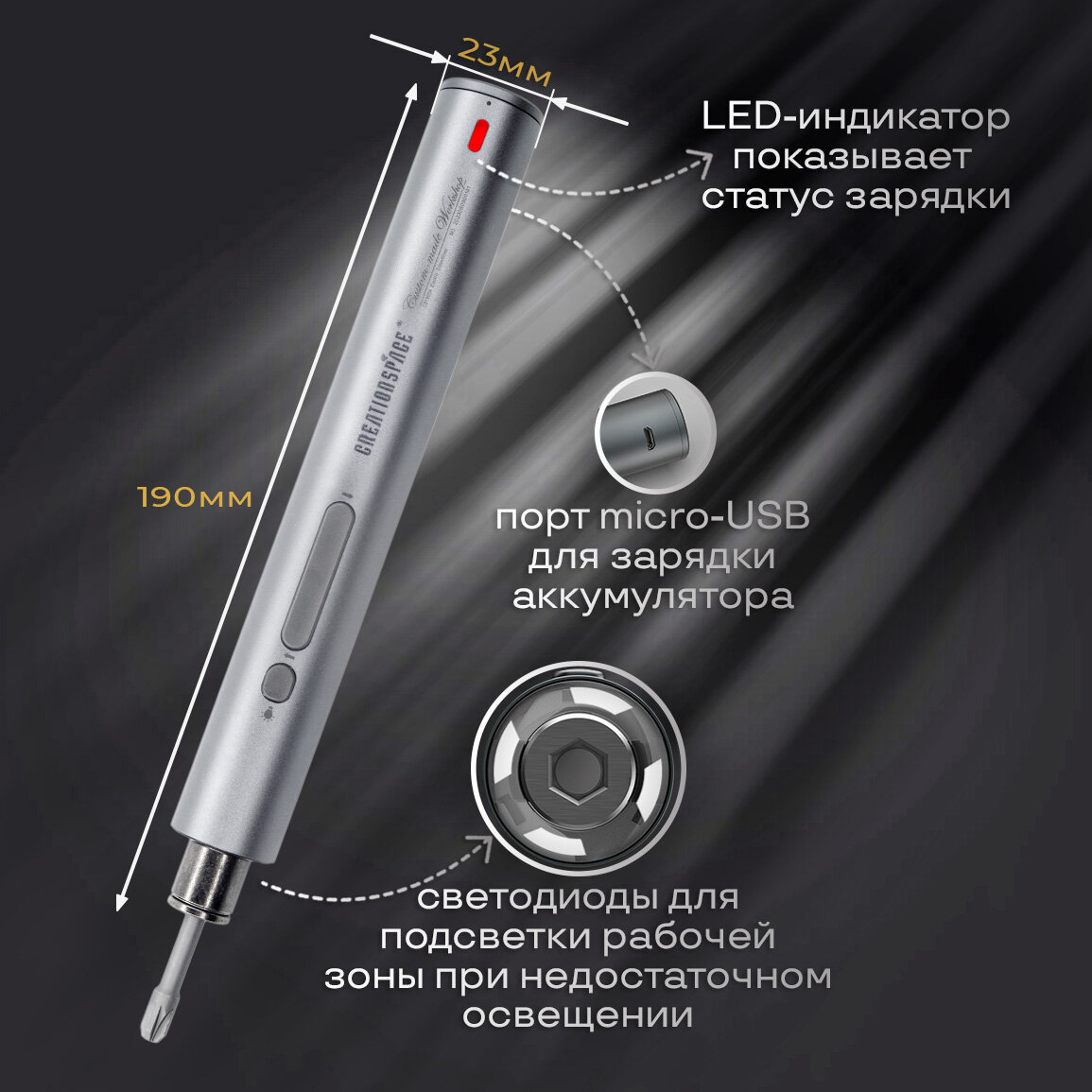 Купить Отвертка для точных работ аккумуляторная электрическая Creation Space для телефона, ноутбука, очков, электроники 32 биты