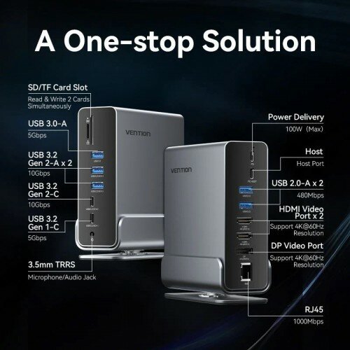 Док-станция Vention 15-in-1, серый (TPUH0)