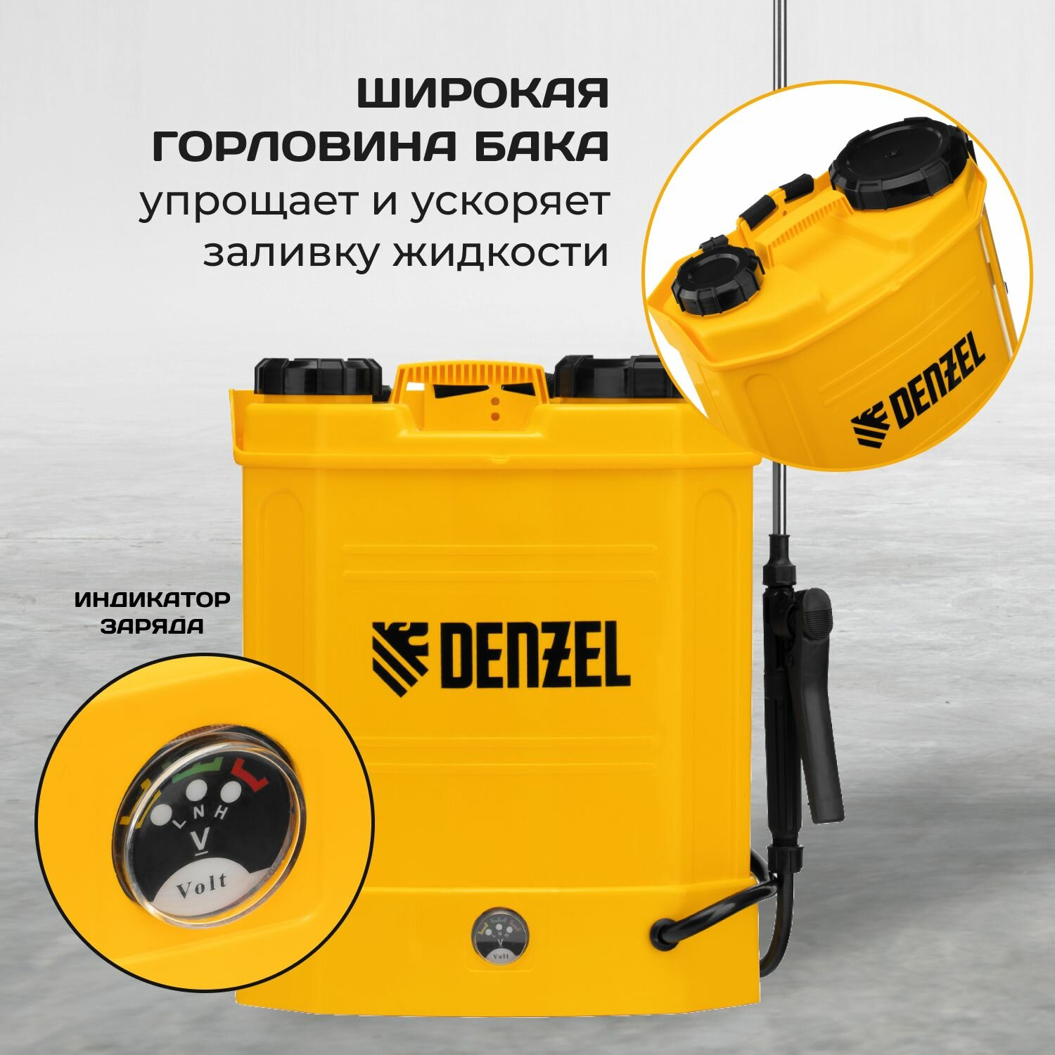 Опрыскиватель ранцевый аккумуляторный Denzel D-12LA, 12 л, щелочной акк, 12 В, 8 Ач 64788