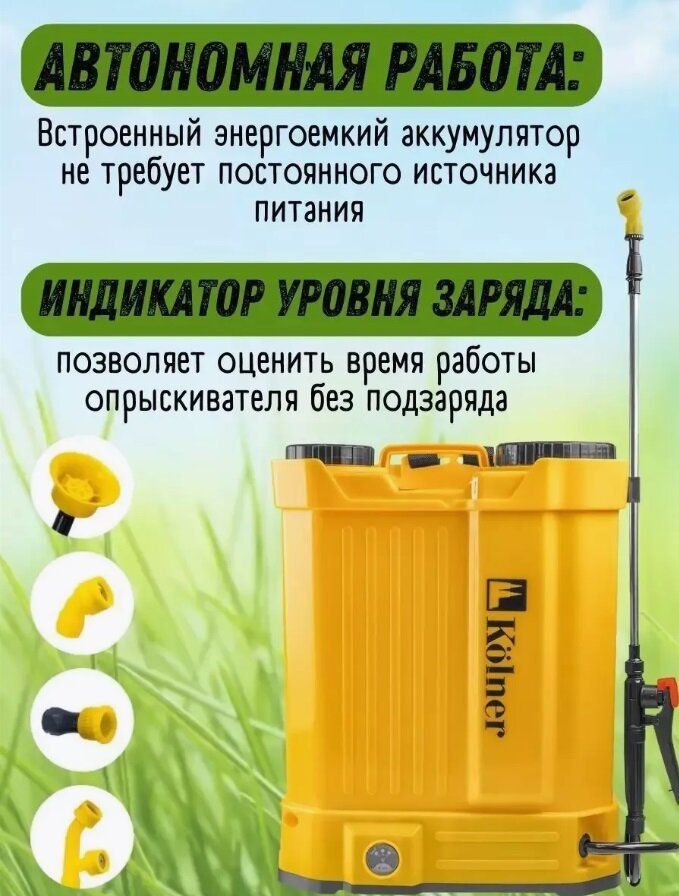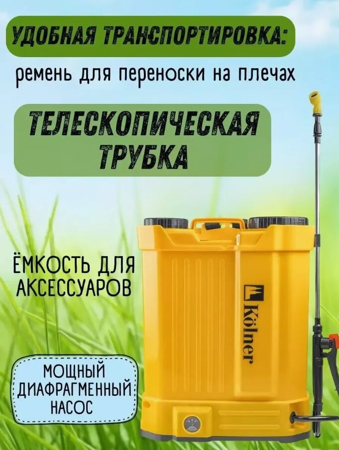Опрыскиватель Kolner 16/12 BP-SLA, аккумуляторный, на плече, желтый интересное: