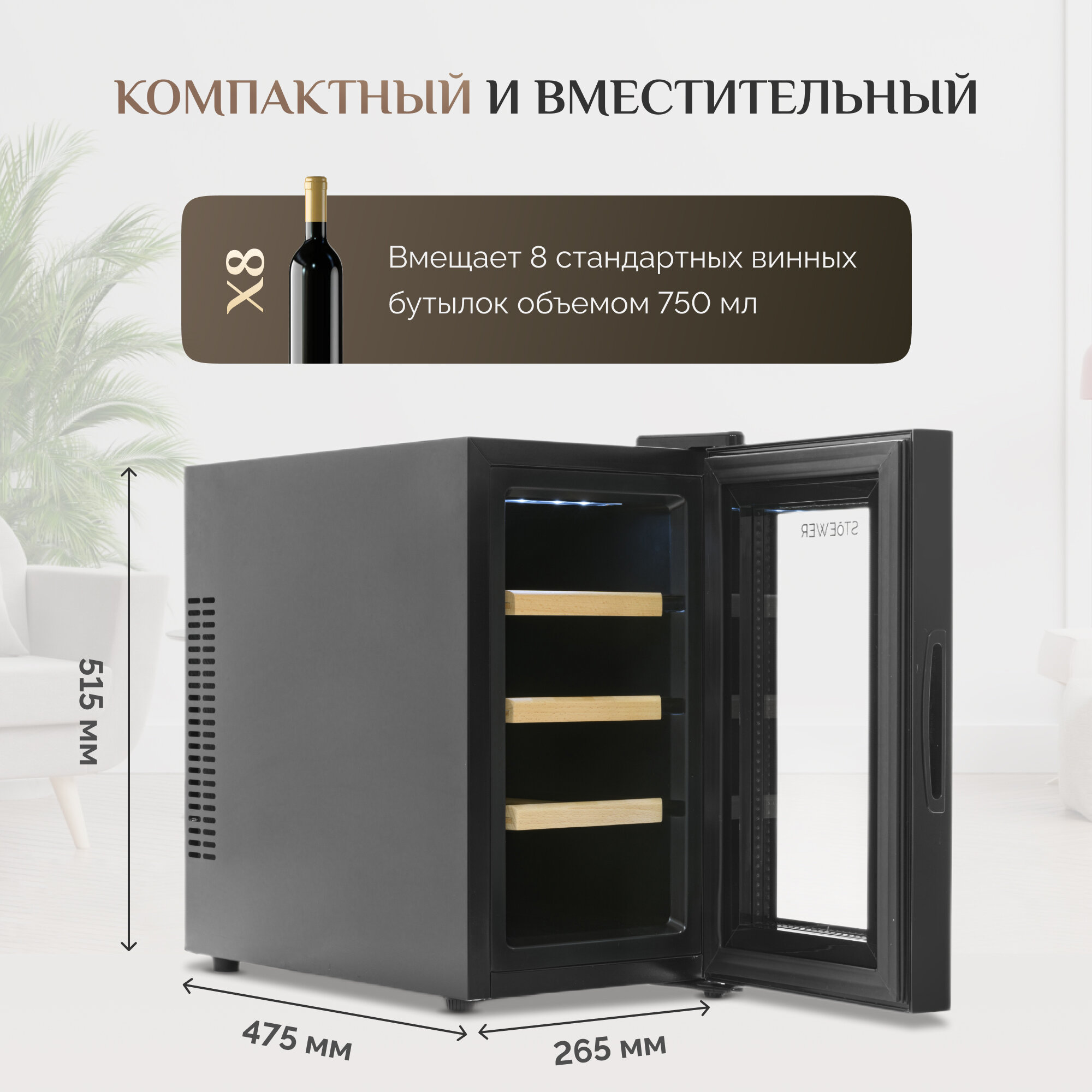 Винный шкаф Stoewer Штоер Wine Box DC08 с деревянными полками, 8 бутылок интересное: