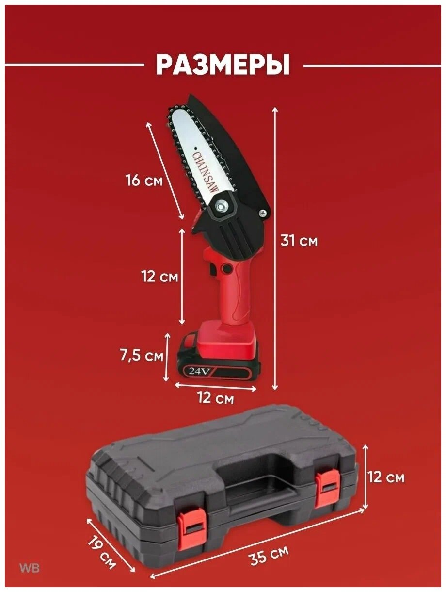 Аккумуляторная цепная пила Hilda Red, 4 дюйма, кейс, красная интересное: