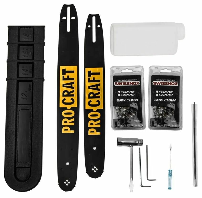 Бензопила цепная GS50 2/2 PROCRAFT 2,9 л. с, 52 см3, 40/45 см, 20 м/с (2 шины + 2 цепи)