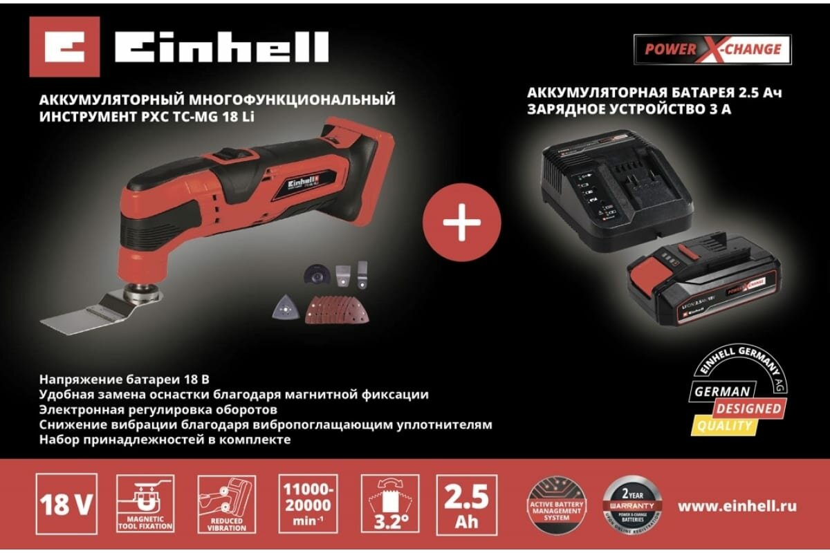 Многофункциональный аккумуляторный инструмент Einhell pxc tc-mg 18 li + 1 акк. pxc 2.5 Ач 18 В + ЗУ
